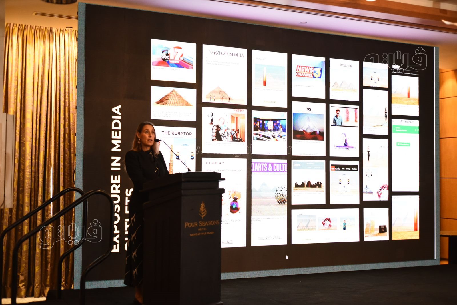 عقد منذ قليل المؤتمر صحفى للإعلان عن تفاصيل إطلاق النسخة الرابعة من معرض "الأبد هو الآن" فى منطقة هضبة الأهرامات، تحت رعاية وزارة الثقافة ووزارة السياحة والآثار ووزارة الخارجية المصرية وهيئة تنشيط السياحة ومنظمة اليونسكو، وذلك بحضور ومشاركة السفيرة منال الشناوى، ممثل وزارة الخارجية، ورافاييل بينتانجلو الملحق الثقافى الإيطالى، والفنان محمد فارس وعدد من الفنانين العرب والأجانب.