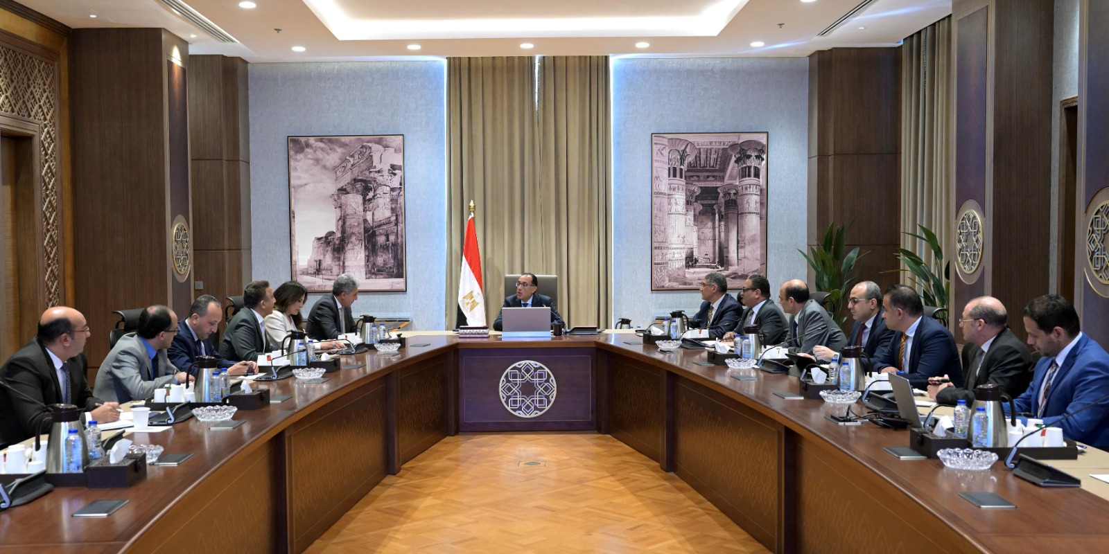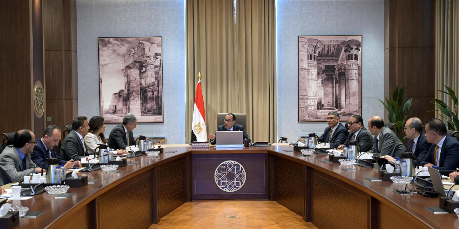 عقد الدكتور مصطفى مدبولي، رئيس مجلس الوزراء، اليوم، اجتماعا؛ لمتابعة اللمسات النهائية لمشروع المتحف المصري الكبير، وكذا موقف تطوير المنطقة المحيطة، وذلك استعدادا لافتتاحه خلال الفترة القريبة المقبلة، وذلك بحضور كل من شريف فتحي، وزير السياحة والآثار، والمهندس عادل النجار، محافظ الجيزة، واللواء عاطف مفتاح، المشرف العام على مشروع المتحف المصري الكبير، ومسئولي الوزارات والجهات المعنية.