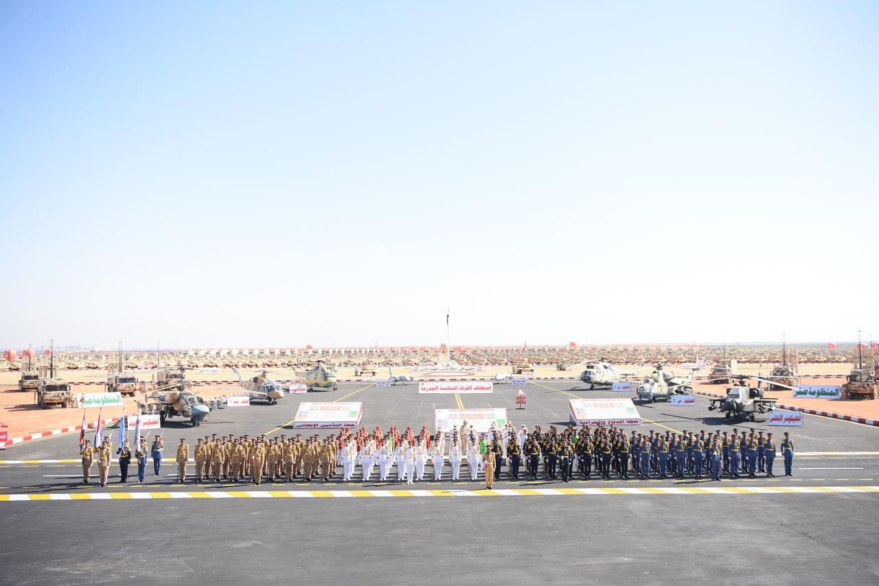 كما شاهد الرئيس عبد الفتاح السيسي عرضا مبهرا للقوات الجوية وتشكيلات المروحيات ونظم الدفاع وحماية الأمن القومى المصري وتنفيذ مهام الهجوم ضد الأهداف.