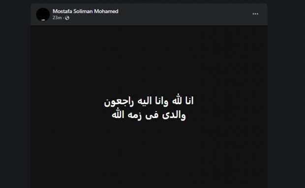 أعلن الفنان الشاب مصطفى سليمان عبر حسابه الخاص على موقع التواصل الاجتماعي وفاة والده، وكتب: "إنا لله وإنا إليه راجعون، والدي في ذمة الله".