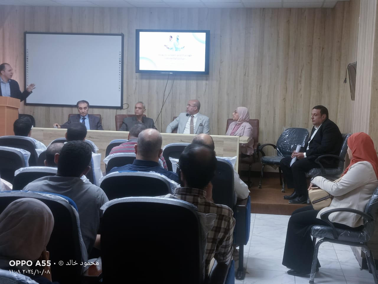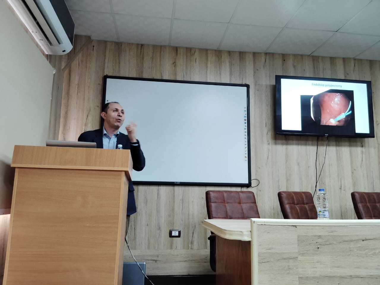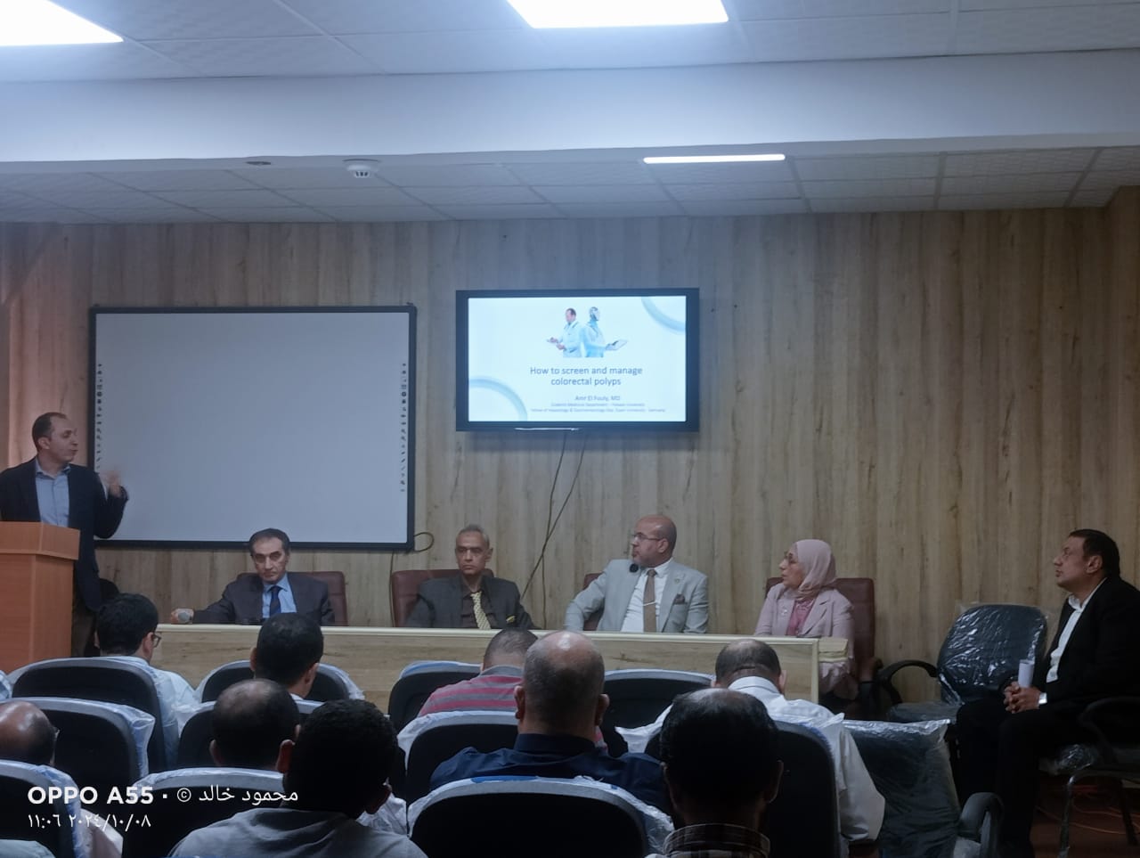 وألقى الدكتور عمرو الفولى استاذ المناظير بكلية الطب جامعة حلوان محاضرات عن الخطوات والاجراءات التى تتم منذ اكتشاف الحالة وحتى اجراء المنظار لازالة الورم د، ومحاضرة اخرى عن كيفية التشخيص الدقيق واحد اليات واساليب العلاج بالمناظير.