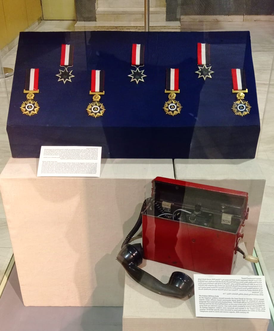 وأوضحت الدكتورة نشوى جابر نائب الرئيس التنفيذي للشؤون الأثرية، أن المعرض يضم مجموعة متميزة من مقتنيات المتحف من بينهم نماذج لأسلحة تعرض لأول مرة، والتي تبرز تطور العسكرية المصرية وتاريخها وبطولاتها الخالدة، والحروب التي قادها الجيش المصري أقدم مؤسسة عسكرية عبر العصور، بالإضافة إلي مناظر جدارية للعجلات الحربية المستخدمة فى الحروب، ومجموعة مختلفة من الغدارات من القرن ال 19 والرماح، ومجموعة من أدوات القتال كالدروع والخوذة والتى ترجع للعصر الإسلامي، ومجموعة من النياشين والأوسمة منها وسام نجمة سيناء.