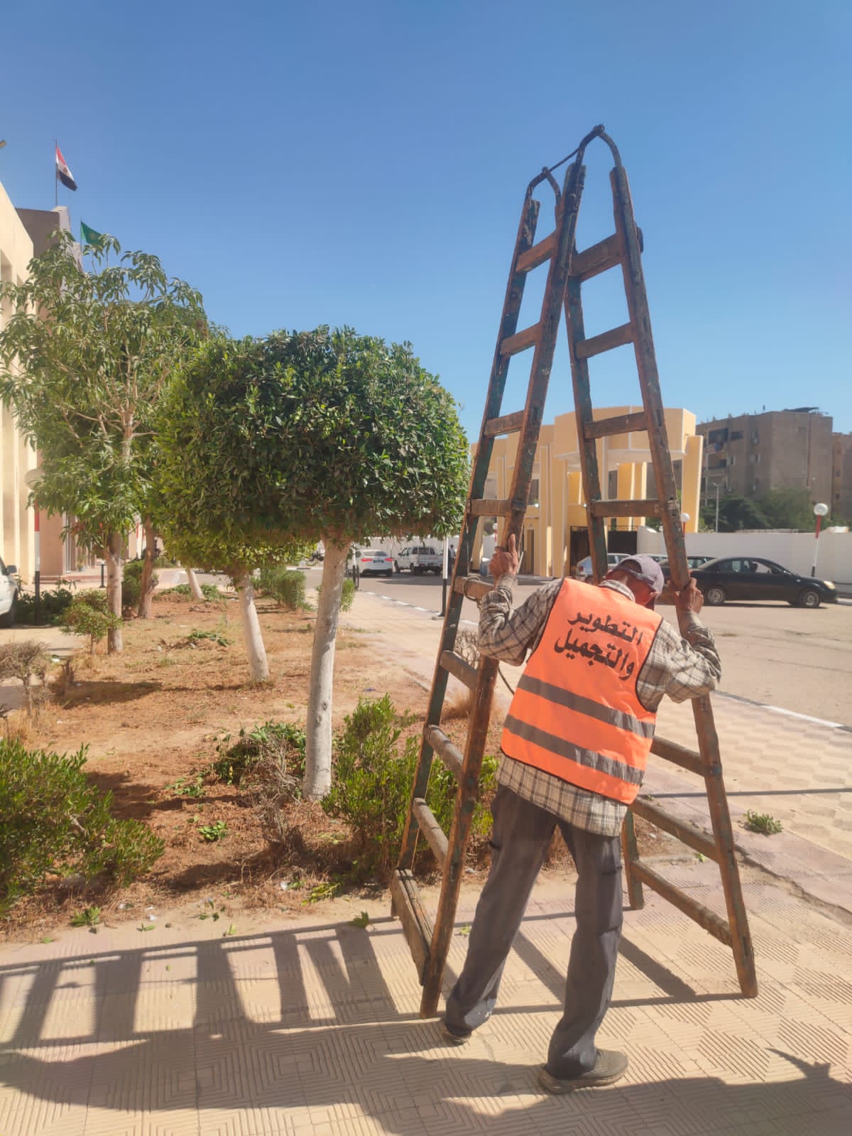 ومن جهة أخرى واصل جهاز التطوير والتجميل أعماله في مسطحات وميادين الإسماعيلية، بالتنسيق مع حي ثالث الإسماعيلية، حيث تم صيانة وقص وتهذيب الأشجار، وإزالة جميع الشوك ورفع كل المخلفات، بمنطقة جاردن سيتي شرق بمساحة حوالي نصف فدان.