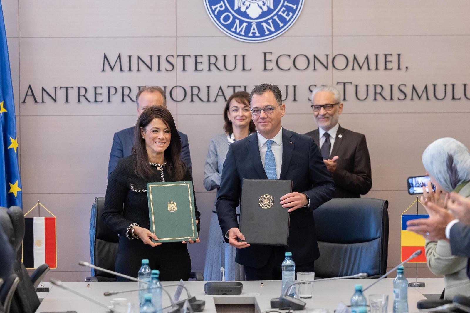 كما شهدت وزيرة التخطيط والتنمية الاقتصادية والتعاون الدولي، توقيع خطة العمل التنفيذية لمذكرة تفاهم في مجال الزراعة واستصلاح الأراضي، ومذكرة تفاهم بين جهاز تنمية المشروعات الصغيرة والمتوسطة ومتناهية الصغر، ووزارة الاقتصاد وريادة الأعمال والسياحة الرومانية، واتفاقية الخدمات المتعلقة بتركيب خطوط أنابيب توزيع الغاز، واتفاقية لتصنيع منتجات فردية محددة لصناعة النفط والغاز بين شركة تاون جاس الرومانية، وشركة سي أي إس جاس المصرية.
