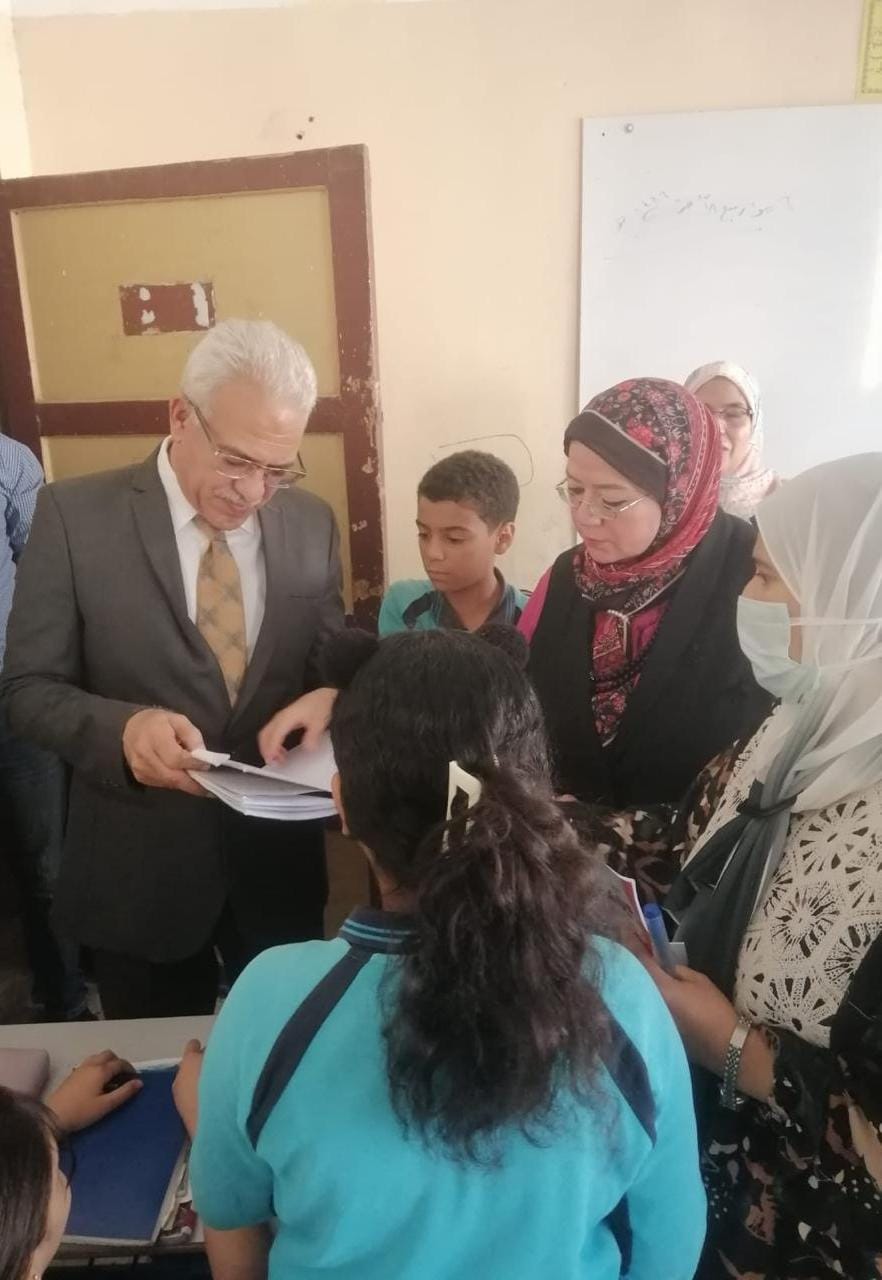 وقام بمناقشة الطلاب فيما تم شرحه للوقوف على مستوى إدراك الطلاب العلمى والثقافى وفقا لتطوير المناهج، كما أكد على ضرورة تفعيل مجموعات التقوية والدعم التعليمي حرصًا على صالح الطلاب.