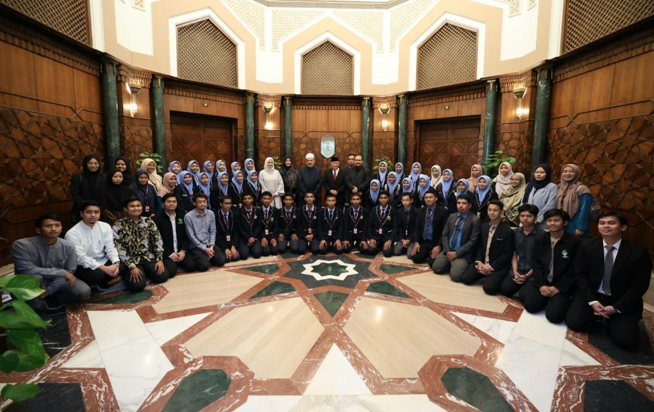 استقبل فضيلة الإمام الأكبر أ. د. أحمد الطيب، شيخ الأزهر الشريف، السيد محمد زين شمس الدين، مؤسس ورئيس معهد ديا ماليلا بإندونيسيا، يرافقه وفد طلاب معهد «تزكي للتربية الإسلامية الحديثة» الملتحقين ببرنامج «المعايشة اللغوية»، بحضور أ. د. نهلة الصعيدي، مستشار شيخ الأزهر لشؤون الوافدين.