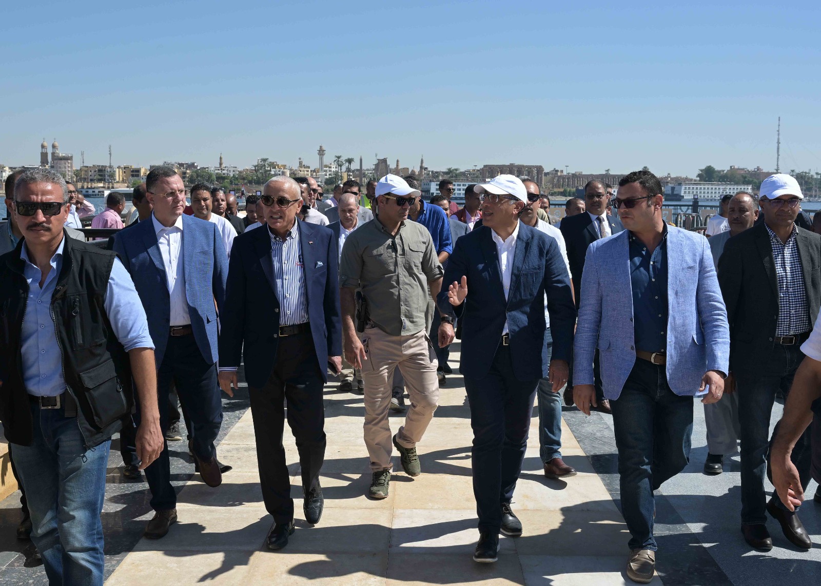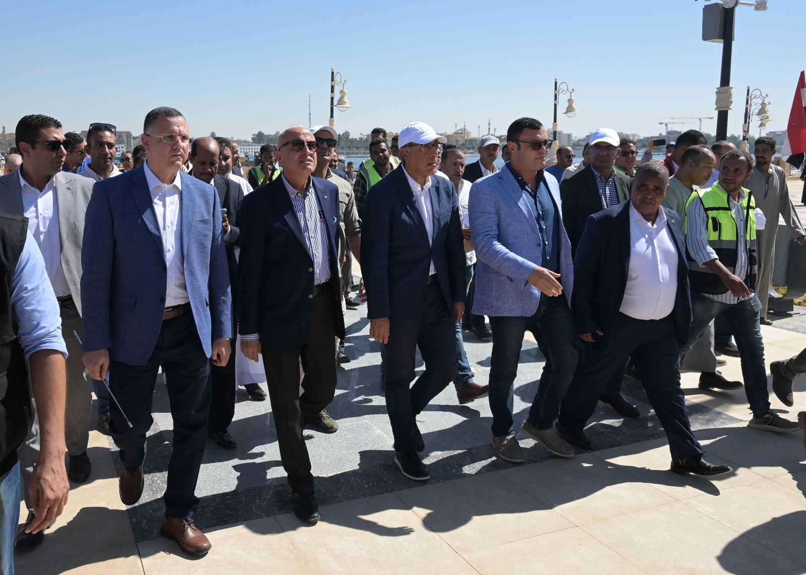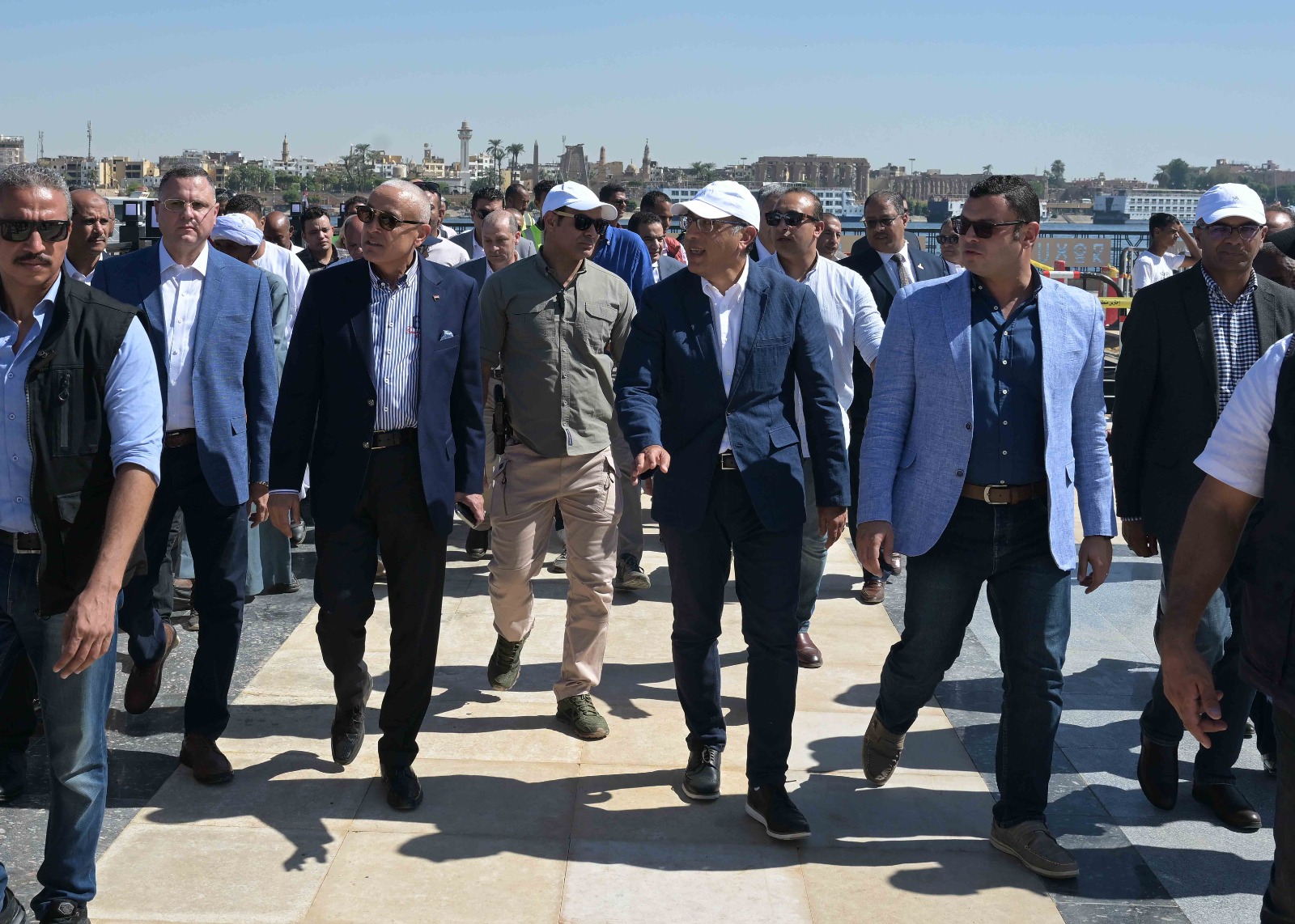 تفقد الدكتور مصطفى مدبولي، رئيس مجلس الوزراء، ومرافقوه، خلال زيارته لـ محافظة الأقصر اليوم؛ أعمال تطوير كورنيش البر الغربي، ومنطقة المطاعم، والممشى الزجاجي، حيث كان فى استقبالهم، المهندس أسعد مصطفى، مدير المشروع بجهاز تعمير البحر الأحمر، والدكتور أحمد عواد، استشاري المشروع.