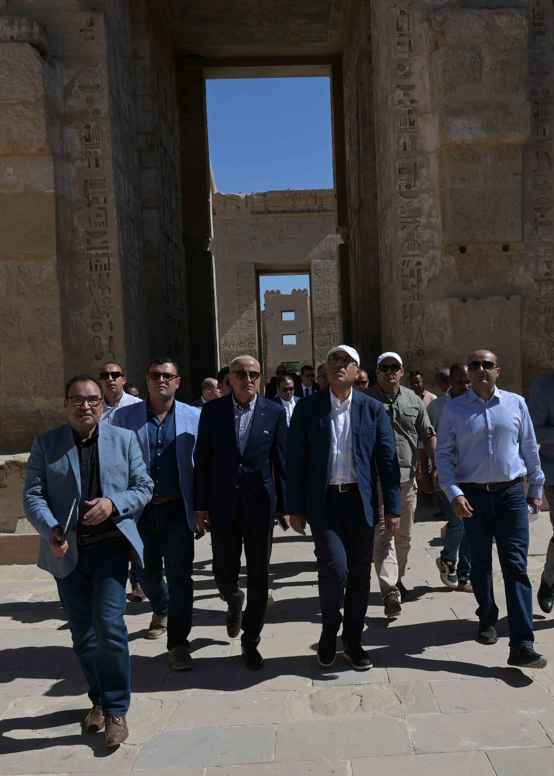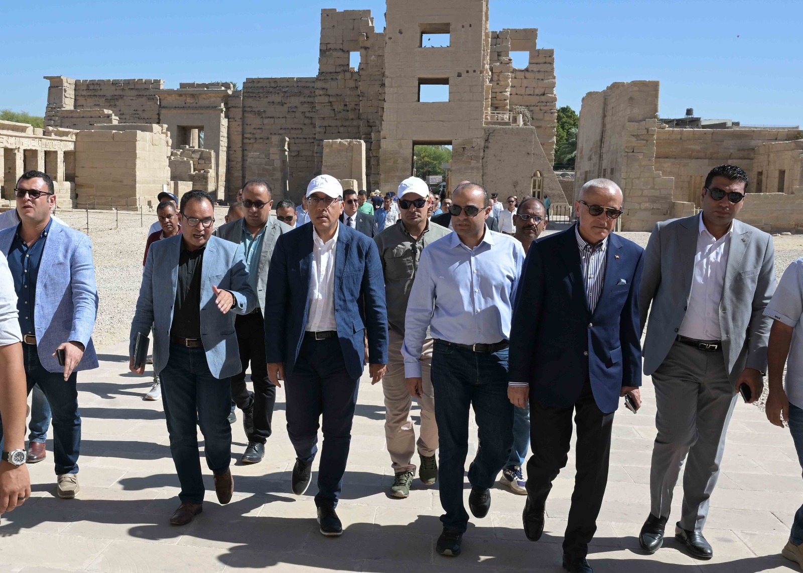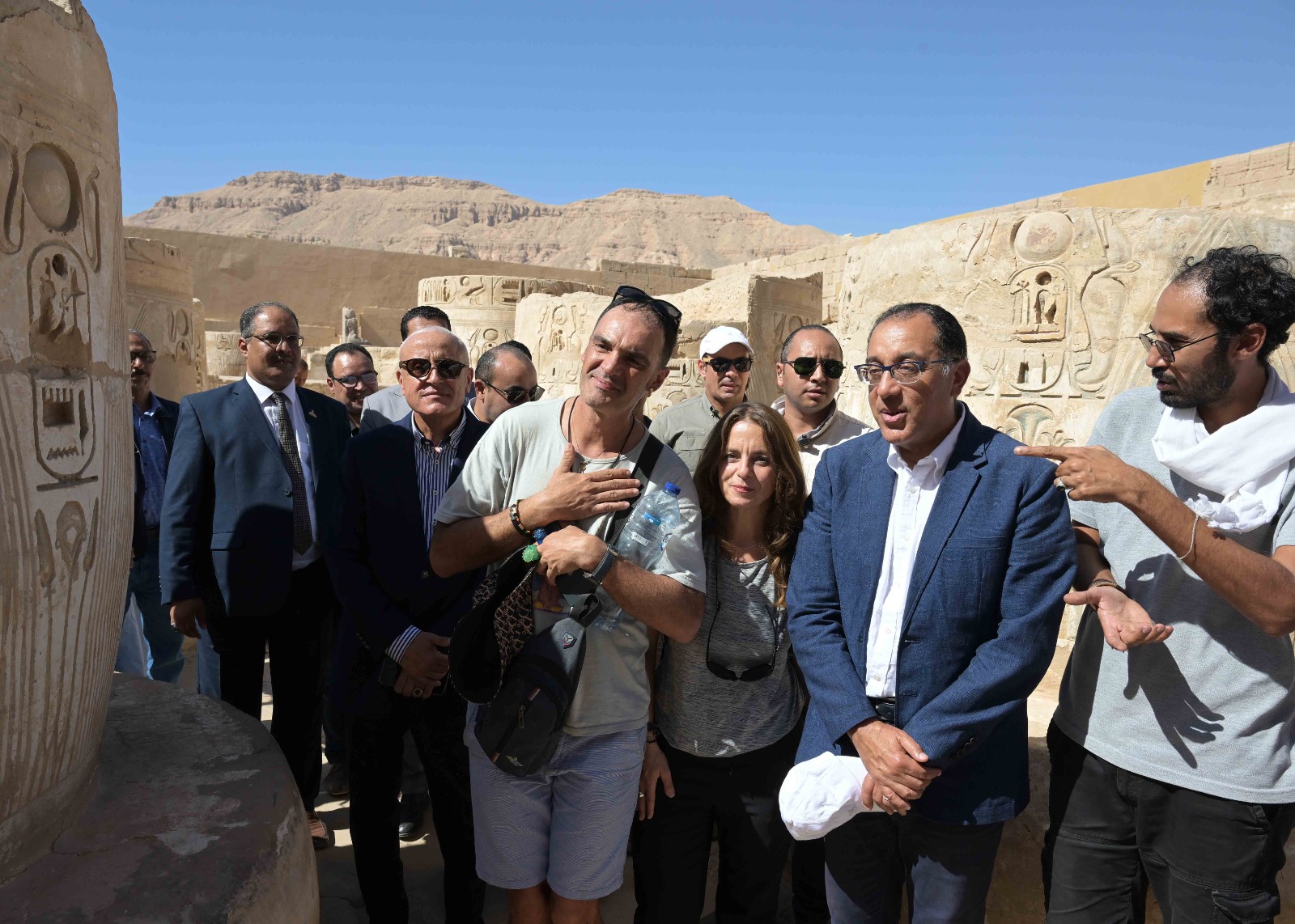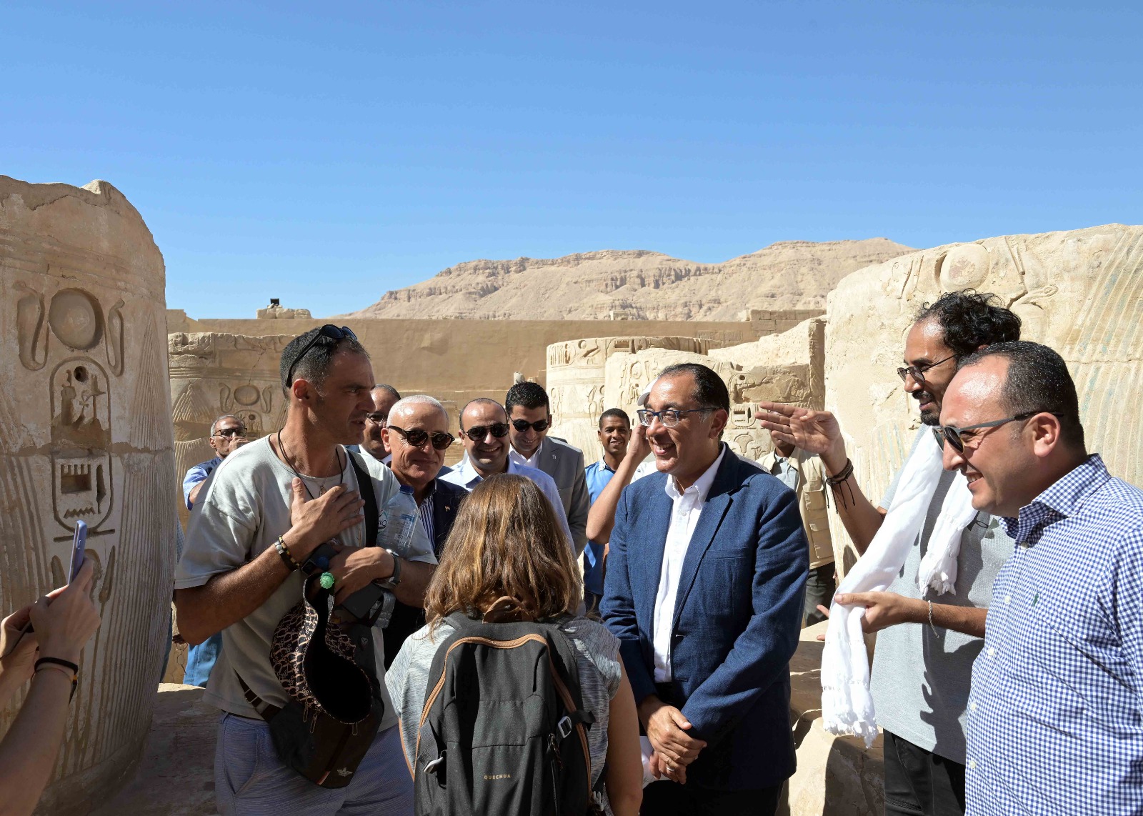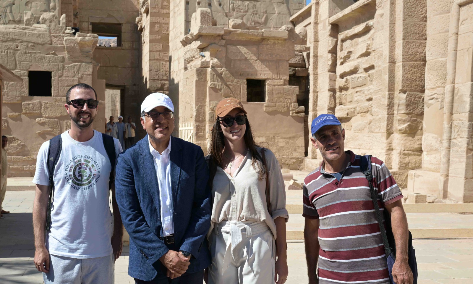 رئيس الوزراء يتفقد معبد "هابو" بالأقصر ويلتقط صورا تذكارية مع السائحين