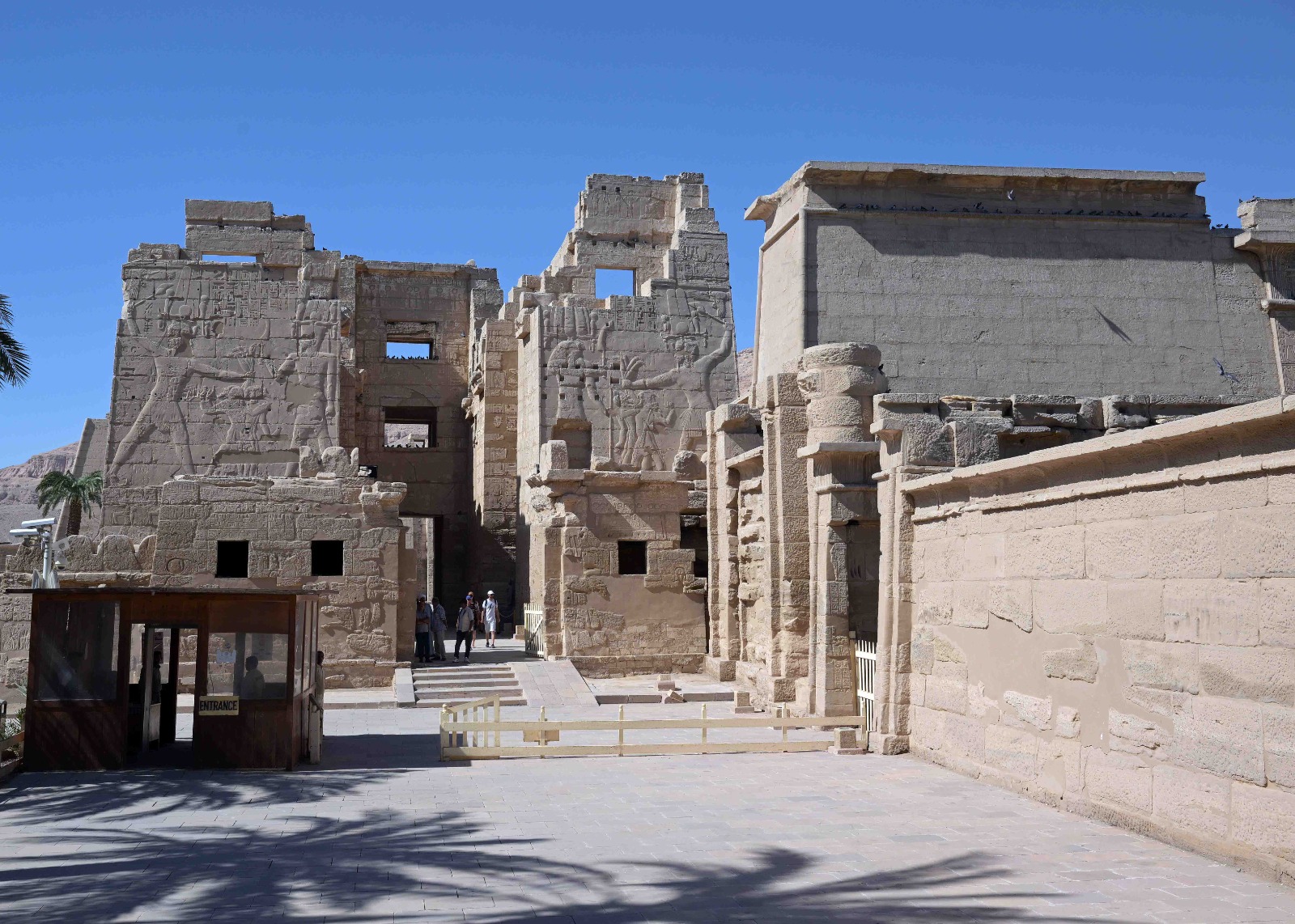 وأشار مدير المعبد إلى أن معبد "هابو" يتكون من فنائين مفتوحين، وينتهي بصالة الأعمدة، ثم قدس الأقداس، موضحا أن جدران المعبد زُينت بمناظر المعارك الحربية التي خاضها الملك، بالإضافة إلى مناظر تمثل تقديمات الملك للآلهة المختلفة وأهمهم ثالوث طيبة (آمون وموت وخونسو).