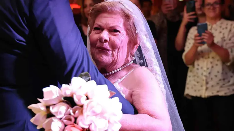 وأظهر مقطع فيديو وصور من داخل قاعة أفراح، العروس المسنة وبدت بمشاعر مختلطة بين الفرح والتأمل، فيما يشاركها عدد كبير من المدعوين زفافها غير الاعتيادي ذاك.