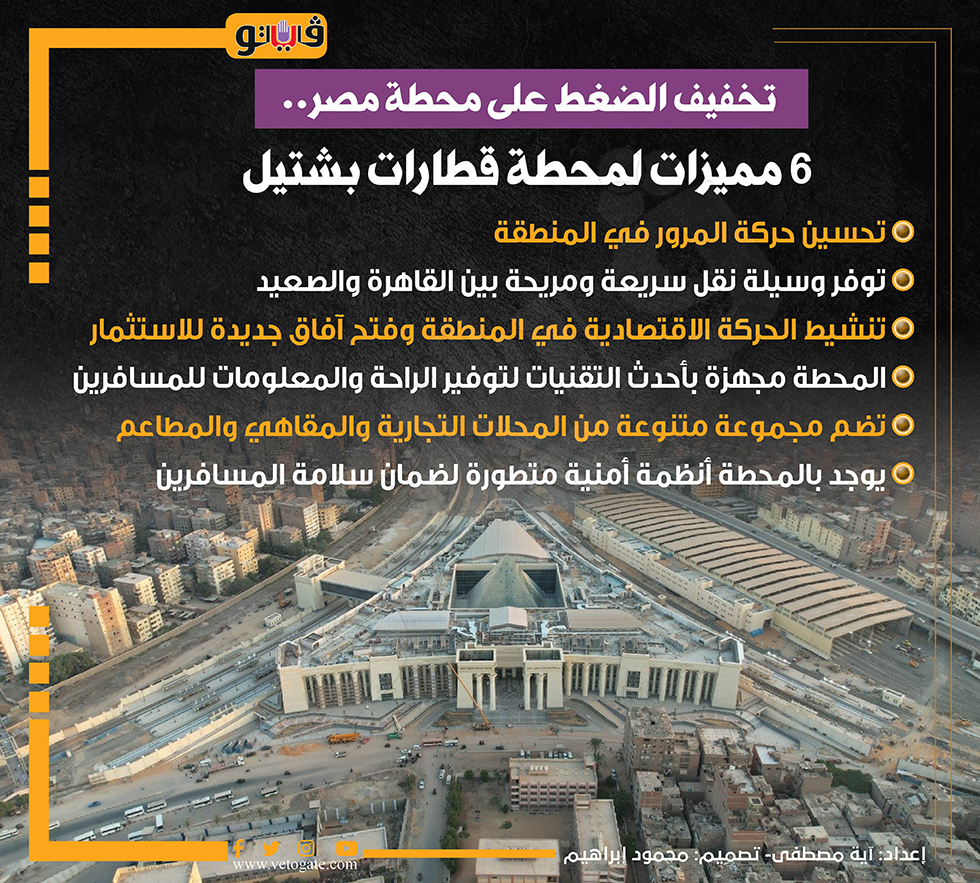تخفيف الضغط على محطة مصر.. 6 مميزات لمحطة قطارات بشتيل (إنفوجراف) السبت 12/أكتوبر/2024 - 01:30 م 10/12/2024 1:30:23 PM محطة قطارات بشتيل آية مصطفى شارك طباعة 18 حجم الخط شارك طباعة محطة قطارات بشتيل محطة قطارات محطة مصر