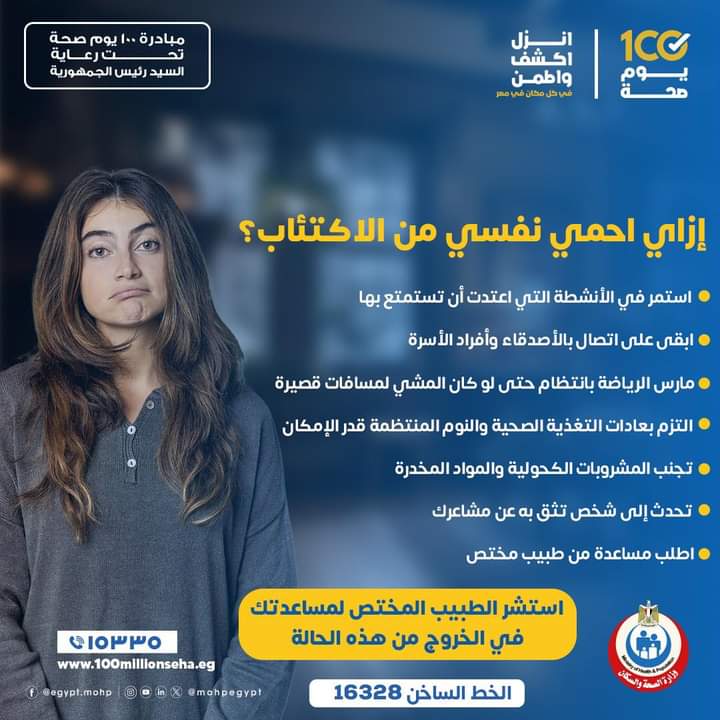 ووجهت وزارة الصحة نصائح للحماية من الإصابة بمرض الاكتئاب منها: