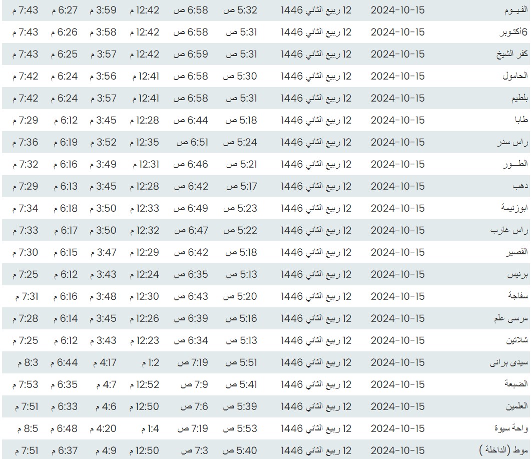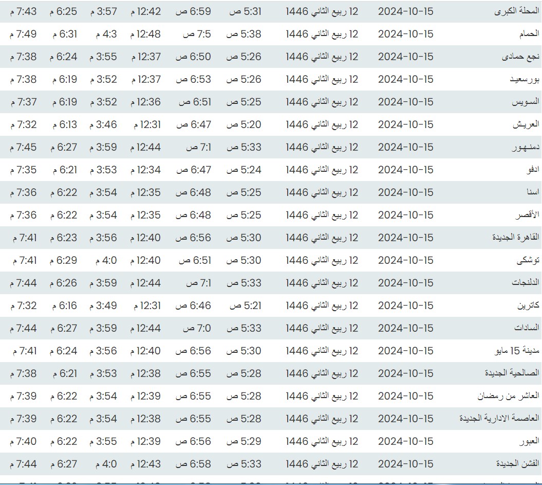 وفيما يلي مواقيت الصلاة، لعدد من مدن ومحافظات الجمهورية من واقع بيانات الهيئة العامة للمساحة