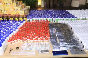 وعقب تقنين الإجراءات تم ضبطهم، وبحوزتهم (أكثر من 170 ألف قرص مخدر ومؤثر – كمية لمخدر الحشيش – أكثر من 210 آلاف قرص وعبوة" منشطات" - 50 كيلو جرام بودرة "ترامادول" – كميات من المواد الكيميائية المستخدمة فى التصنيع - المعدات والأدوات المستخدمة فى التصنيع والتعبئة والتغليف – سيارتين)، وبمواجهتهم اعترفوا بحيازتهم للمضبوطات بقصد تصنيع العقاقير المخدرة والاتجار بها.