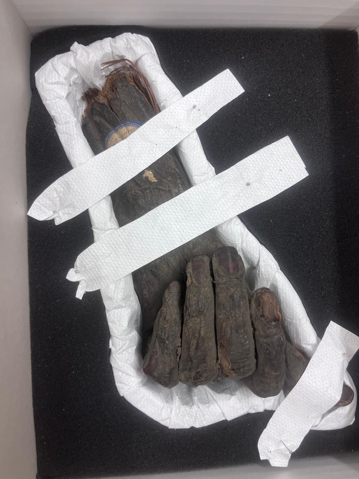 وأوضح الدكتور محمد إسماعيل خالد الأمين العام للمجلس الأعلى للآثار، أن أحداث عملية استرداد هذه القطع بدأت عندما قام متحف مدينة هامبورج بألمانيا بالتواصل مع السفارة المصرية ببرلين معلنًا عن رغبته في تسليم يد وجمجمة مومياء أثريتين وتعودان للحضارة المصرية القديمة.
