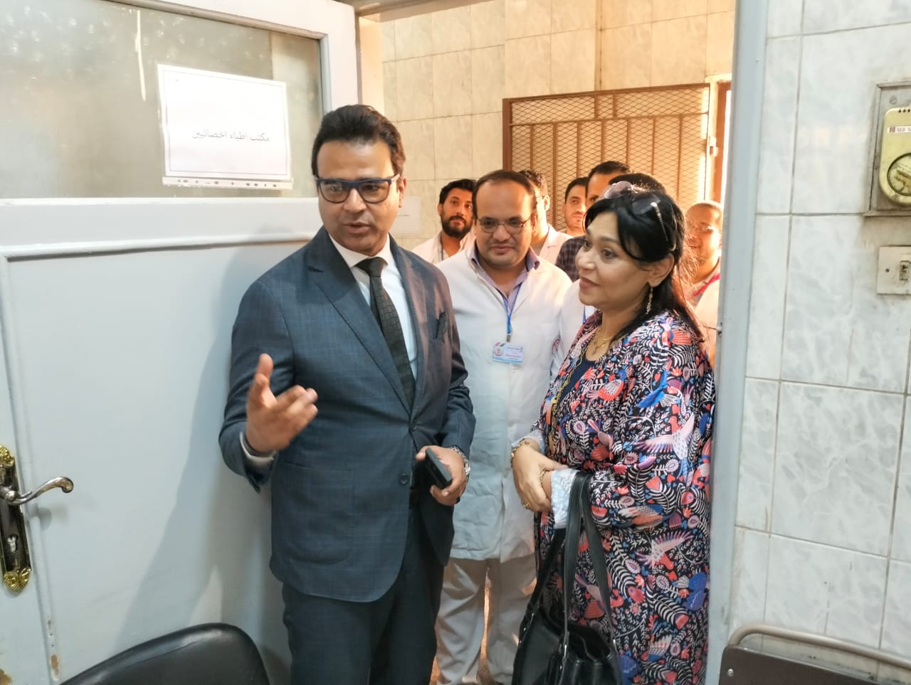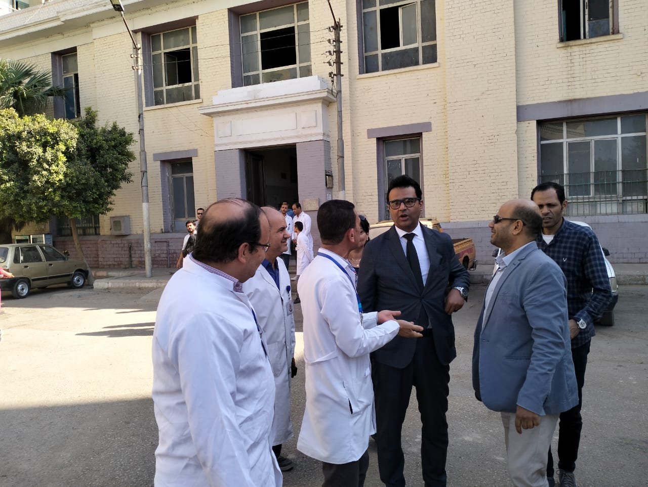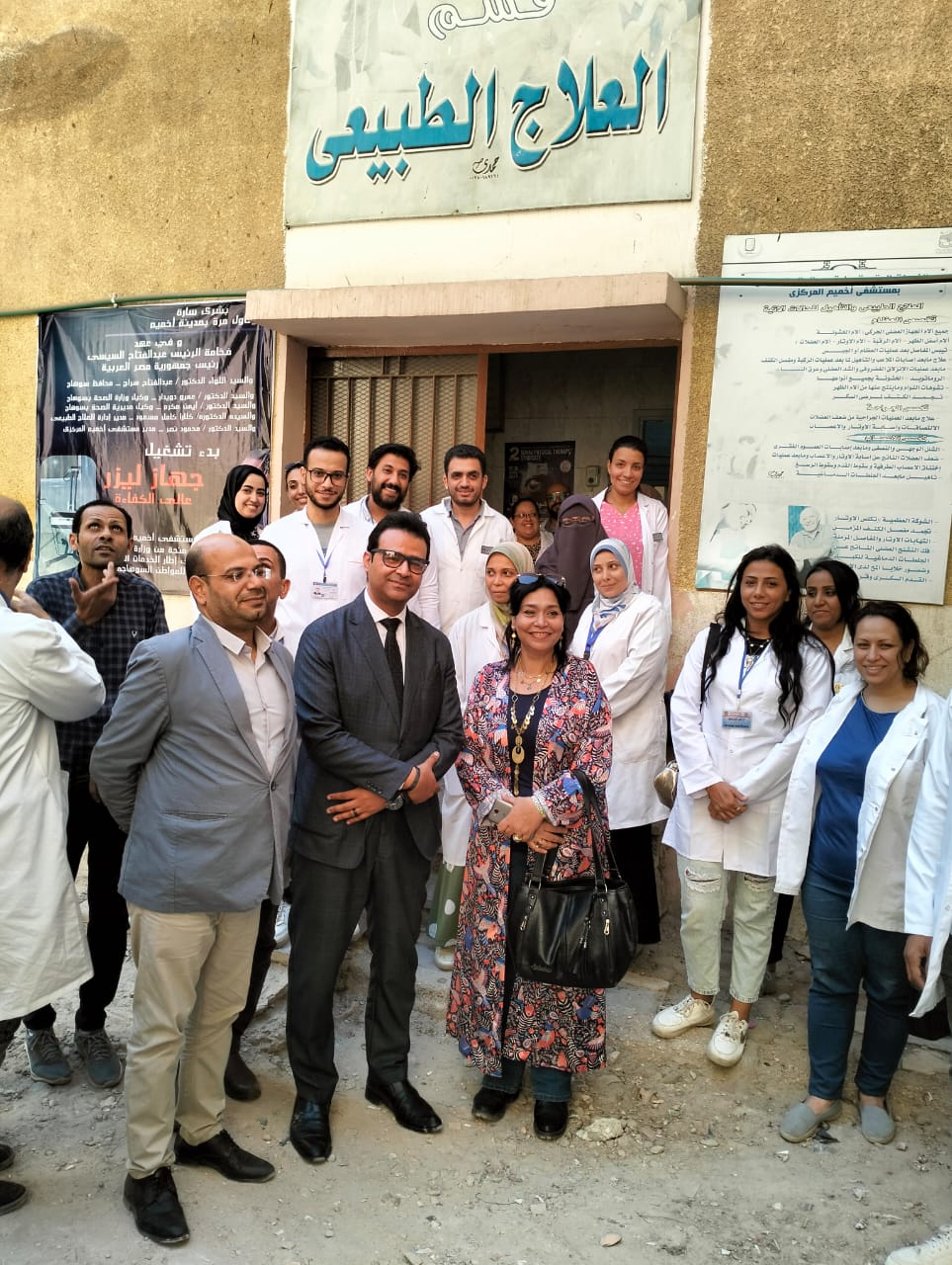 ورافقه الدكتور حسن محروس مدير عام الطب العلاجي وكان في استقباله الدكتور محمود نصر مدير المستشفى والدكتورة كلارا كامل مدير إدارة العلاج الطبيعي والدكتور أشرف مكرم نائب مدير المستشفى والدكتورة رشا أحمد محمد رئيس الوحدة وجميع الأطقم الطبية العاملة بالوحدة.