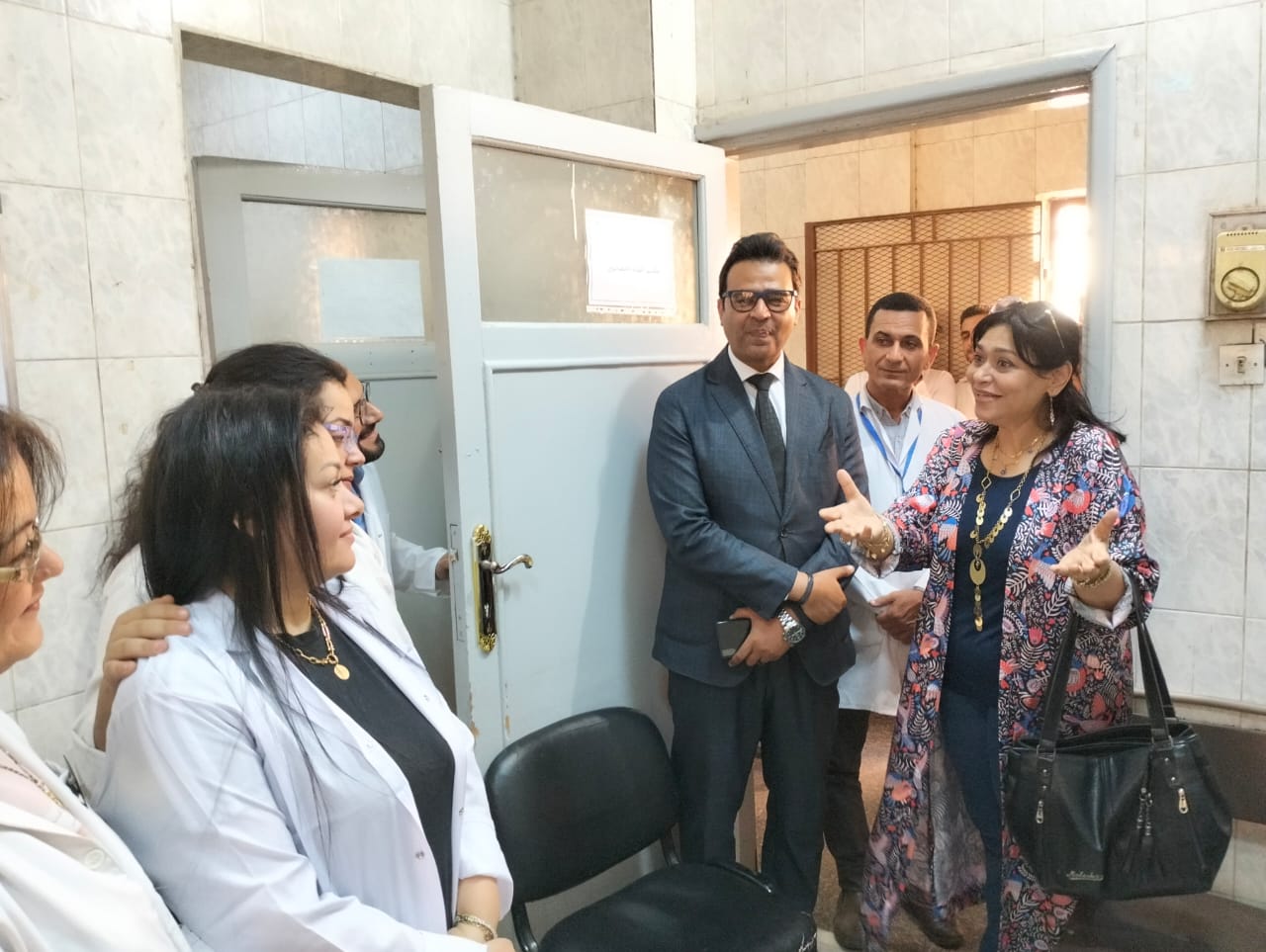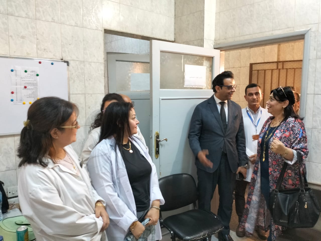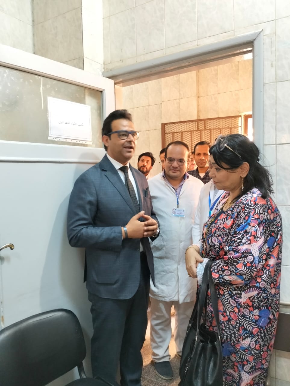 ورافقه الدكتور حسن محروس مدير عام الطب العلاجي وكان في استقباله الدكتور محمود نصر مدير المستشفى والدكتورة كلارا كامل مدير إدارة العلاج الطبيعي والدكتور أشرف مكرم نائب مدير المستشفى والدكتورة رشا أحمد محمد رئيس الوحدة وجميع الأطقم الطبية العاملة بالوحدة.