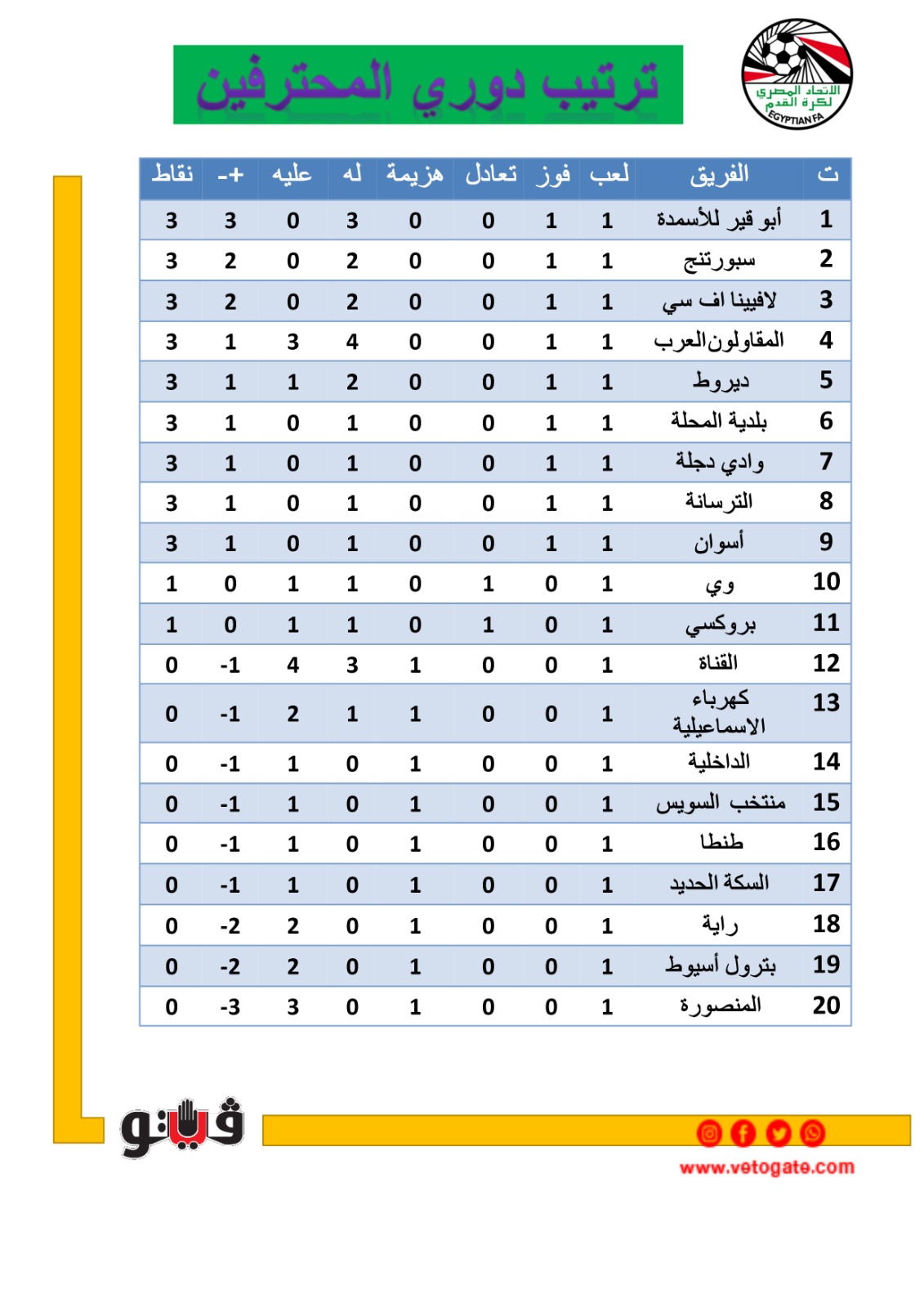 جدول ترتيب دوري المحترفين قبل الجولة الثانية