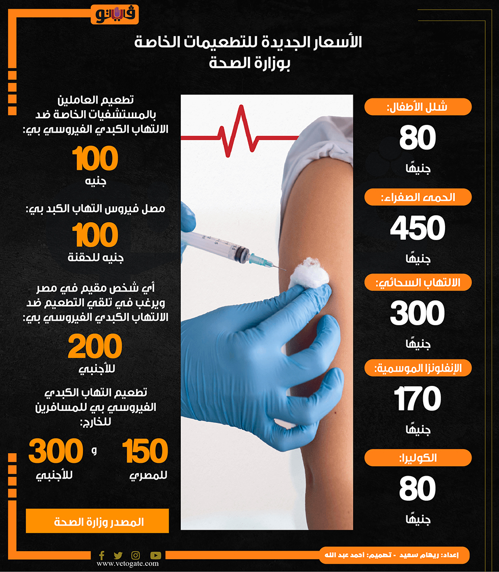 الأسعار الجديدة للتطعيمات الخاصة بوزارة الصحة (إنفوجراف) الأحد 13/أكتوبر/2024 - 08:35 م 10/13/2024 8:35:18 PM الأسعار الجديدة للتطعيمات،فيتو ريهام سعيد شارك طباعة 18 حجم الخط شارك طباعة الالتهاب الكبدي الفيروسي الالتهاب الكبدي الفيروسي بي التطعيم ضد الالتهاب الكبدي الفيروسي بي الانفلونزا الموسمية الالتهاب السحائي الحمي الصفراء الكوليرا التهاب الكبد بي الالتهاب الكبدي فيروس التهاب الكبد بي مرض الالتهاب السحائي مرض شلل الأطفال وزارة الصحة