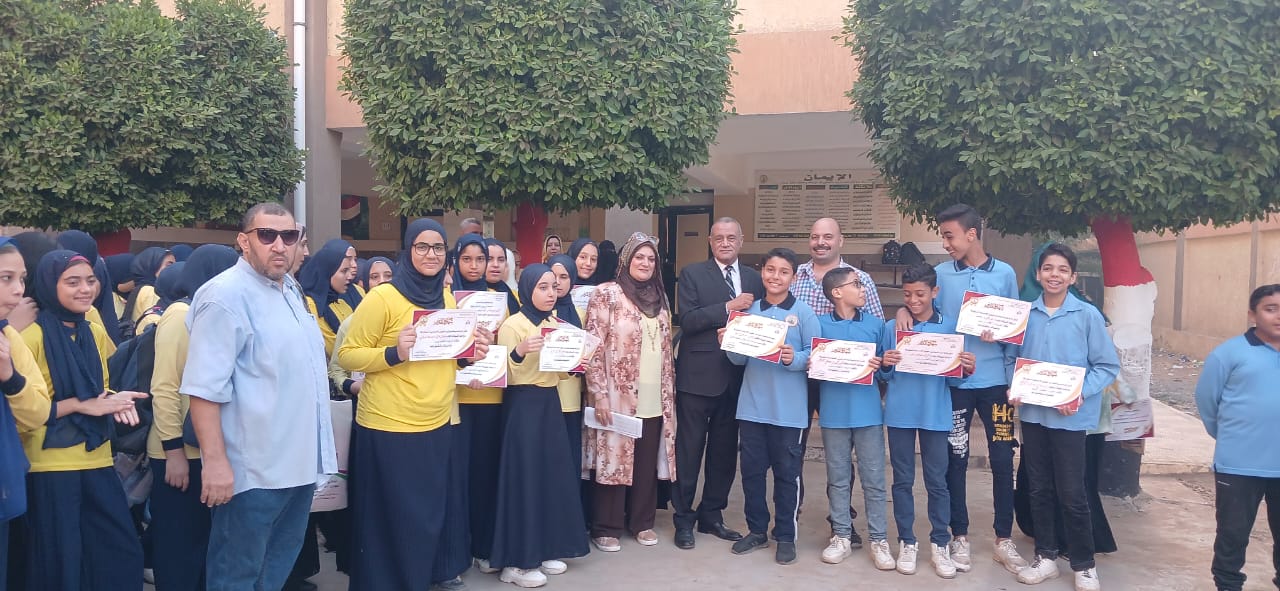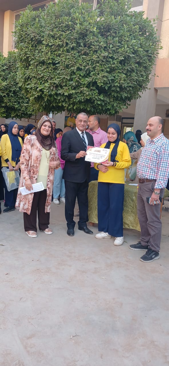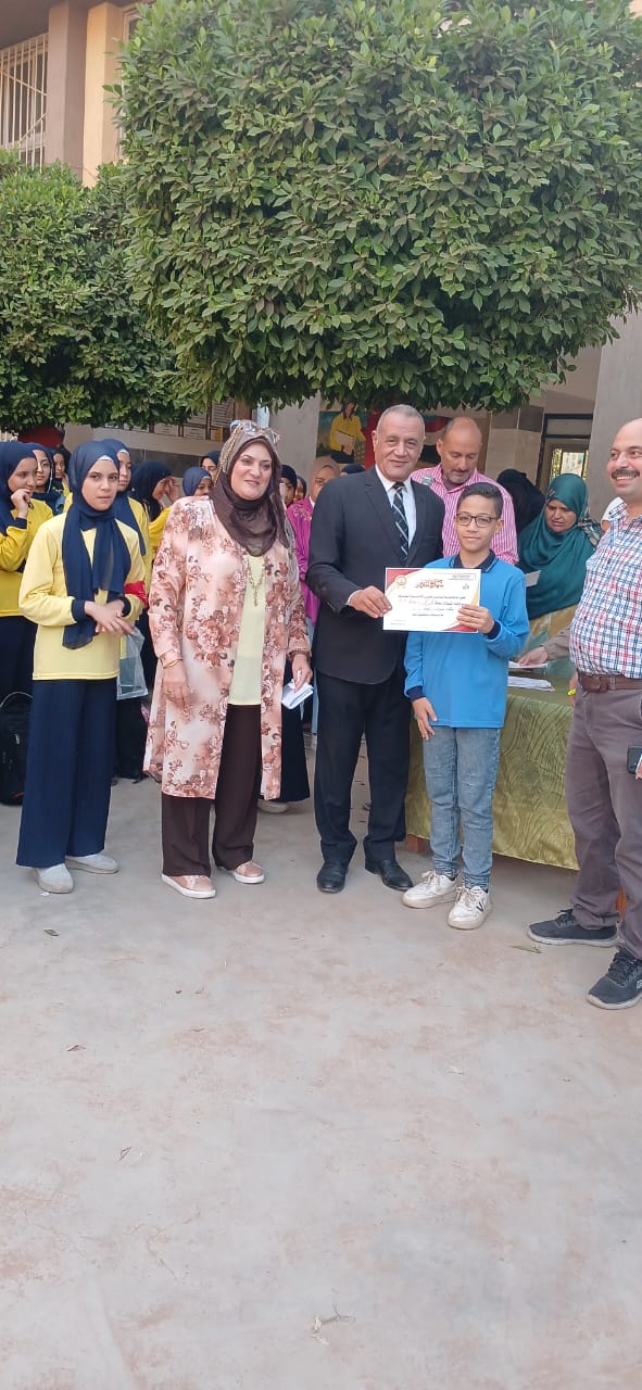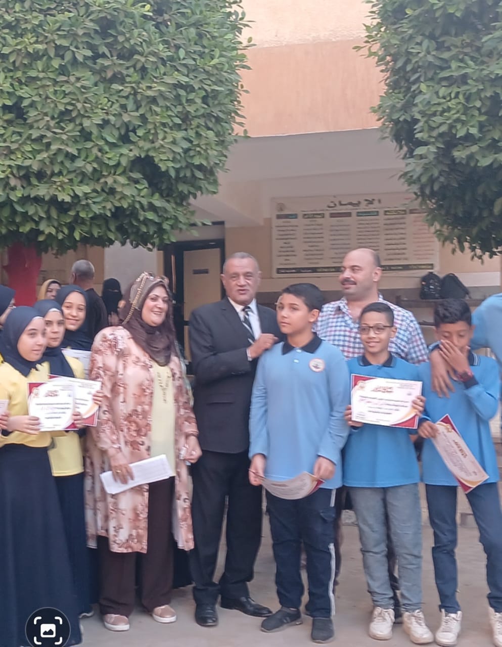 وكرم وكيل التعليم أوائل الطلبة مع مديرة المدرسة سحر شامة ومحمد شومان رئيس قسم التعليم الإعدادي بإدارة غرب.