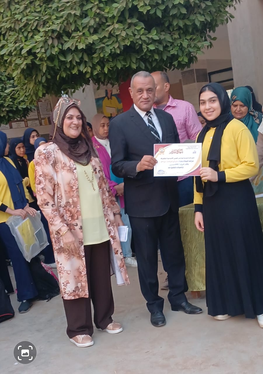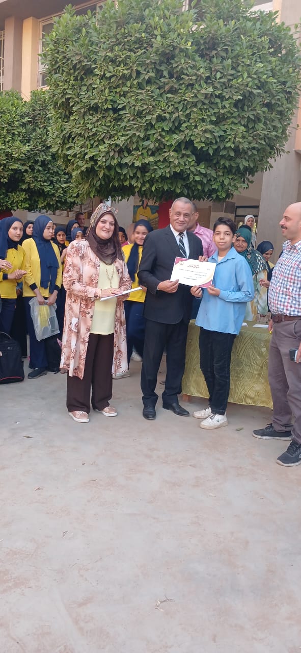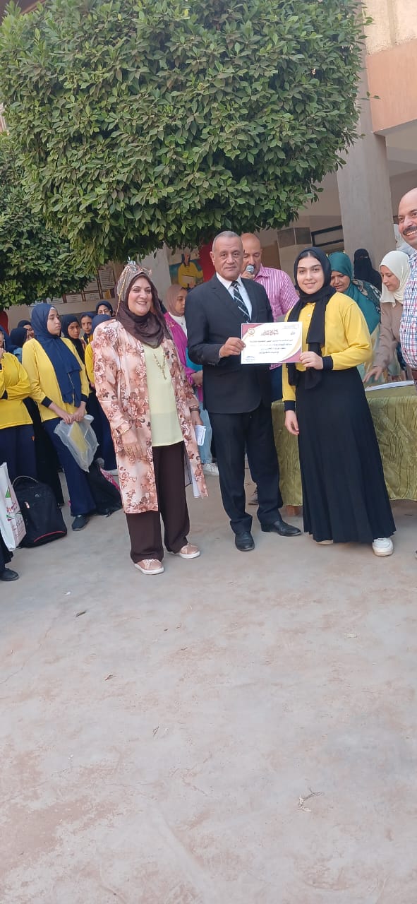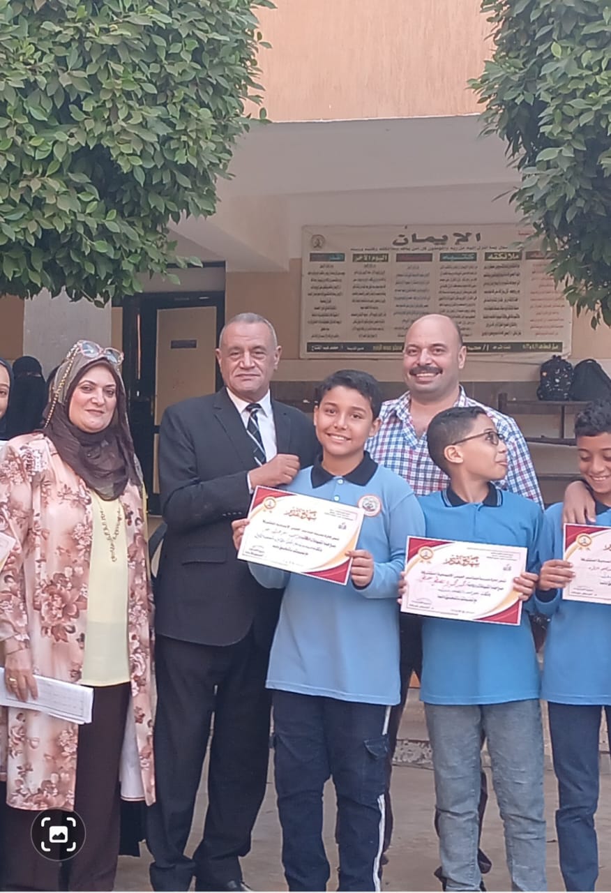 وكرم وكيل التعليم أوائل الطلبة مع مديرة المدرسة سحر شامة ومحمد شومان رئيس قسم التعليم الإعدادي بإدارة غرب.