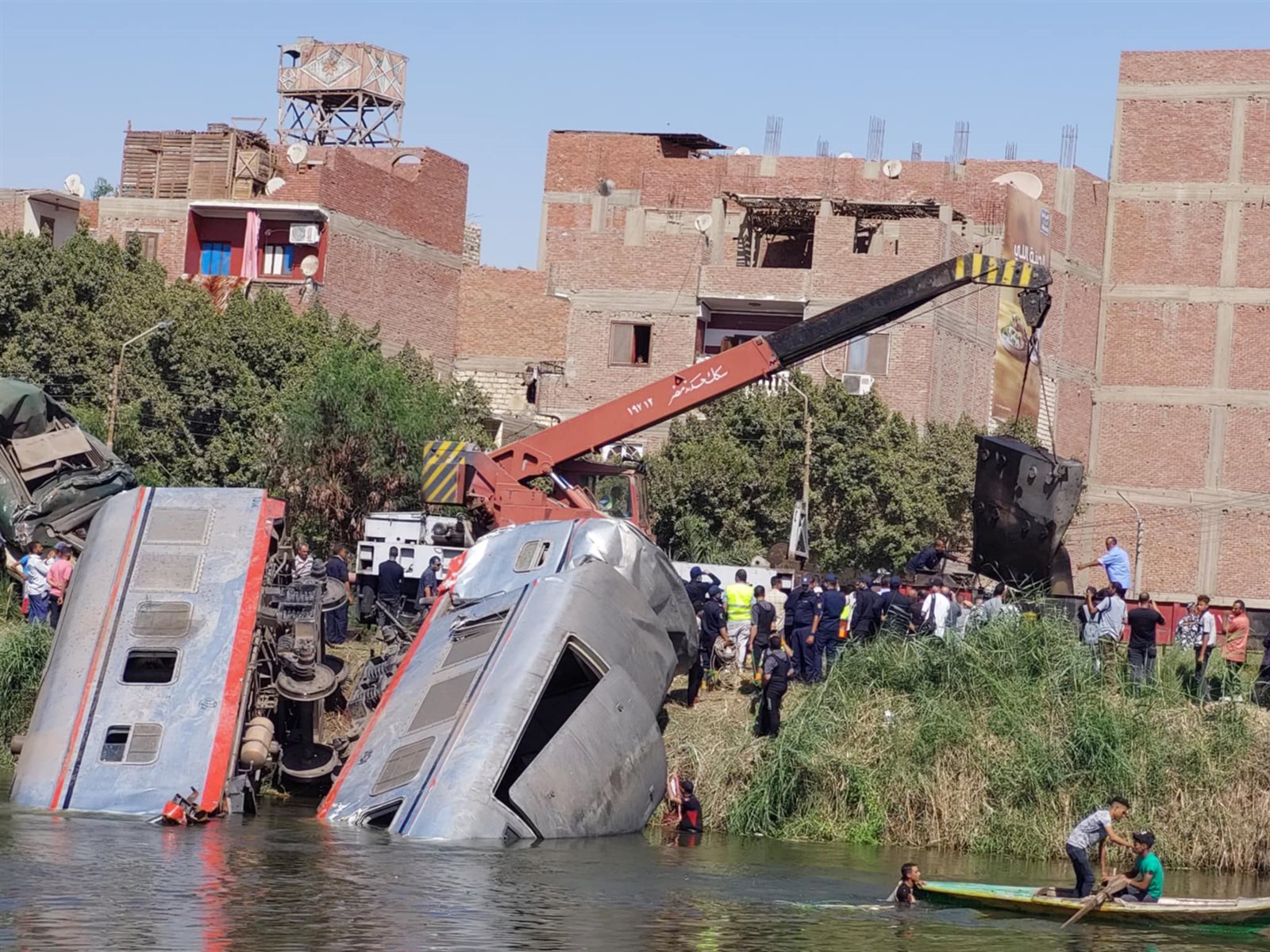 تواصل فرق الإنقاذ وفرق السكك الحديدية أعمال إزالة حطام الجرار المسؤول عن حادث قطار المنيا، وعقب الانتهاء سيتم العمل على رفع عربة القطار المتواجدة في ترعة الإبراهيمية.