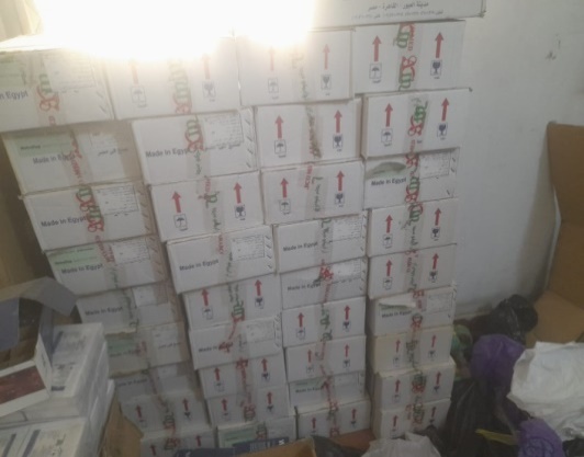 وعقب تقنين الإجراءات بالتنسيق مع الجهات المعنية تم استهدافه وضبطه وعثر بداخل المخزن المُشار إليه على ( 2 مليون قرص أدوية طبية مختلفة الأنواع 500 ألف عبوة محاليل طبية بدون مستندات دالة على مصدرها – 500 ألف أمبول تخدير بدون مستندات دالة على مصدرها – 750 أمبول لأدوية طبية مختلفة الأنواع ).