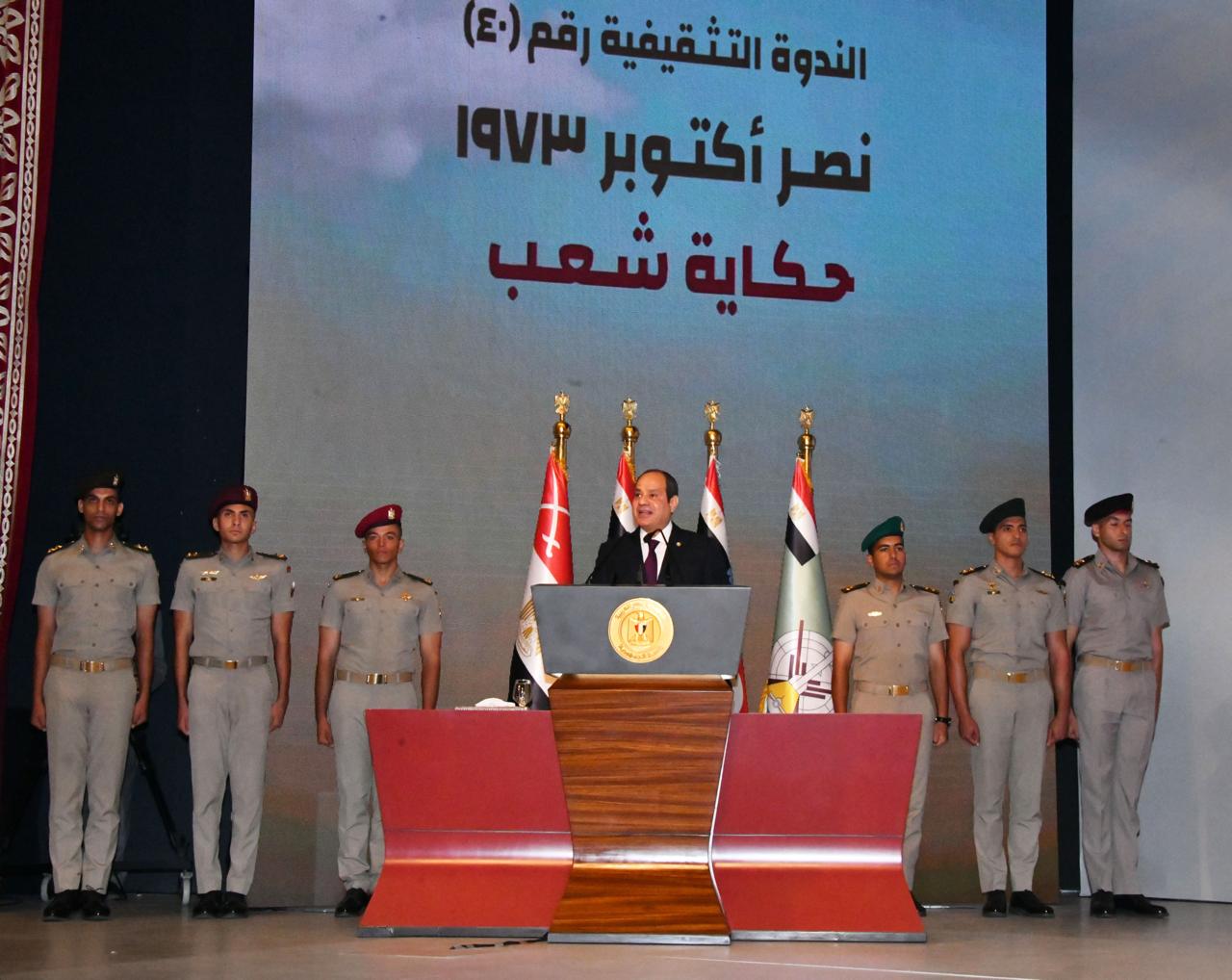 شهد الرئيس عبدالفتاح السيسي، اليوم فعاليات الندوة التثقيفية الـ40 للقوات المسلحة، بمناسبة الاحتفال بانتصارات أكتوبر المجيد وذلك بمركز المنارة للمؤتمرات الدولية بالقاهرة الجديدة.
