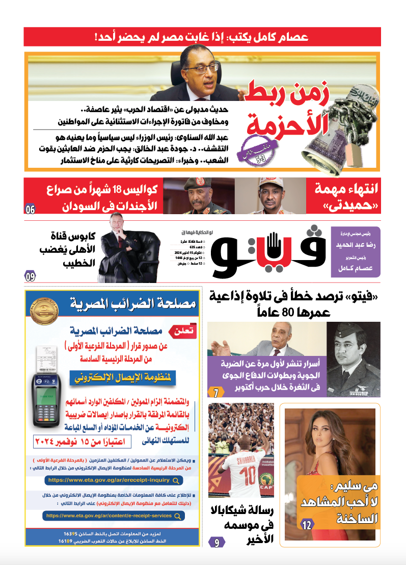 فيتو تكشف في عددها الجديد، زمن ربط الأحزمة.. حديث مدبولى عن «اقتصاد الحرب» يثير عاصفة