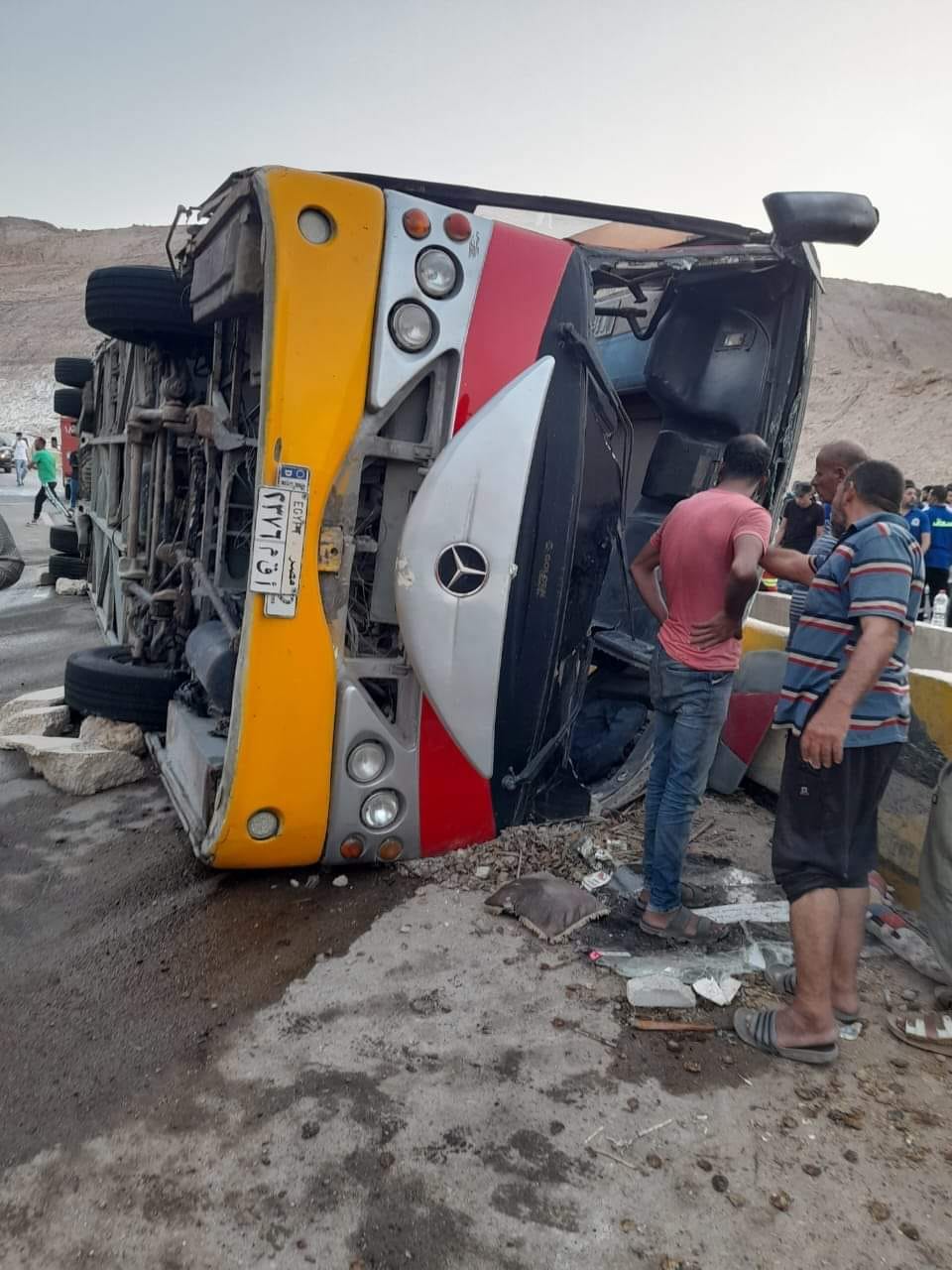 تلقت الأجهزة الأمنية بلاغا يفيد بوقوع حادث انقلاب أتوبيس بطريق الجلالة .
