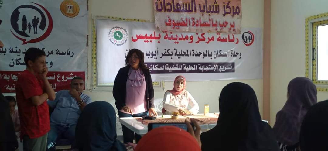 نظم مركز شباب السعادات بالوحدة المحلية كفر أيوب بالتعاون مع وحدة السكان برئاسة مركز ومدينة بلبيس لقاءًا توعويا ويهدف اللقاء إلى إرشاد المستهدفين فى كافة مراحل الحياة لتوعيتهم بالأمور الحياتية والقضايا المجتمعية من أجل الحفاظ على الأسرة المصرية، وذلك في إطار المبادرة الرئاسية للتنمية البشرية "بداية جديدة لبناء الإنسان"ومبادرة «تحدث معه» لرفع الوعي وتفعيل المشاركة في القضية السكانية بإدارة شباب بلبيس شرق بلبيس، حيث تم الحديث عن أضرار التدخين على الفرد والأسرة والمجتمع وكيفية مواجهة تحديات الحياة من خلال السعي والجد والاجتهاد وحسن الظن بالله، بجانب استعراض الأضرار الصحية والأمراض التي يسببها وفرص العمل التي يخسرها الفرد بسبب التدخين الذى يؤثر على صحته وحرمته على المال والدين.