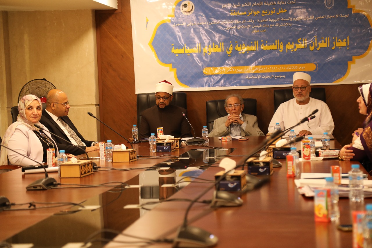 نظمت لجنة الإعجاز العلمي للقرآن الكريم والسنة النبوية المطهرة بمجمع البحوث الإسلامية، احتفالا لتكريم الفائزين بالمسابقة العالمية التي نظمتها اللجنة لعام 2023-2024م، والتي عقدت هذا العام في موضوع: (إعجاز القرآن الكريم والسنة في العلوم السياسية)؛ وذلك في إطار توجيهات فضيلة الإمام الأكبر أ.د. أحمد الطيب – شيخ الأزهر بعقد المسابقات التي تثري الجوانب العلمية والفكرية وتشجع على القراءة والبحث.