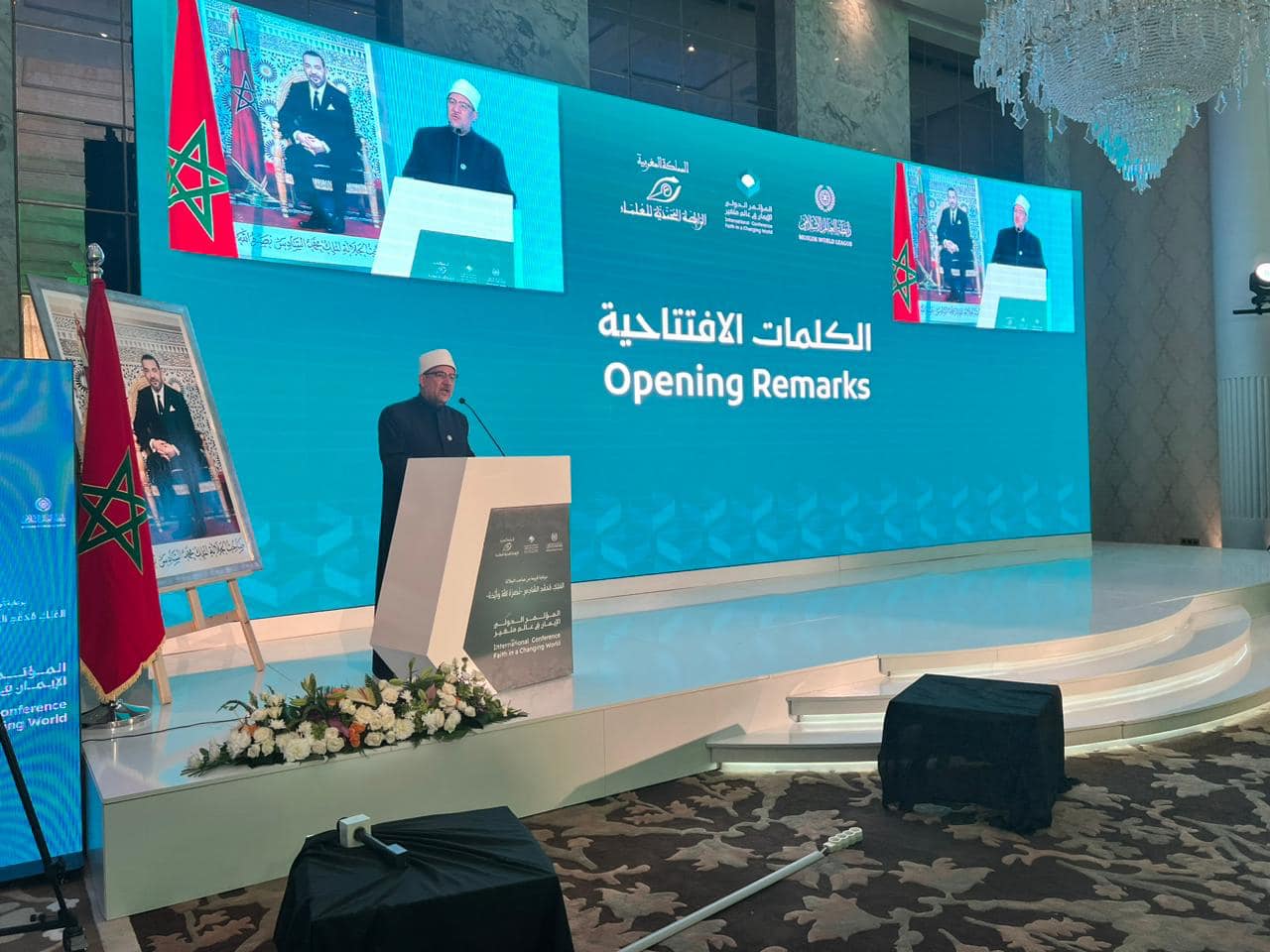 ودعا وزير الأوقاف السابق خلال كلمته الافتتاحية بمؤتمر: "الإيمان في عالم متغير " الذي تعقده رابطة العالم الإسلامي بالتعاون مع الرابطة المحمدية للعلماء بالعاصمة المغربية الرباط لوقف العدوان على غزة ولبنان، ونناشد كل حكماء العالم ومنظماته الدولية سرعة العمل على وقف هذه الحرب قبل اتساع نطاقها، كما ندعو إلى وقف آلة الحرب وإحلال السلام في كل أرجاء الدنيا، فكل الأديان السماوية تجمع على حرمة الدماء والأموال والأعراض، وما يحدث من بعض المنتسبين إليها من سفك للدماء يقع إما بسوء قصد أو بسوء تأويل وكلاهما انحراف عن حقيقة الأديان.