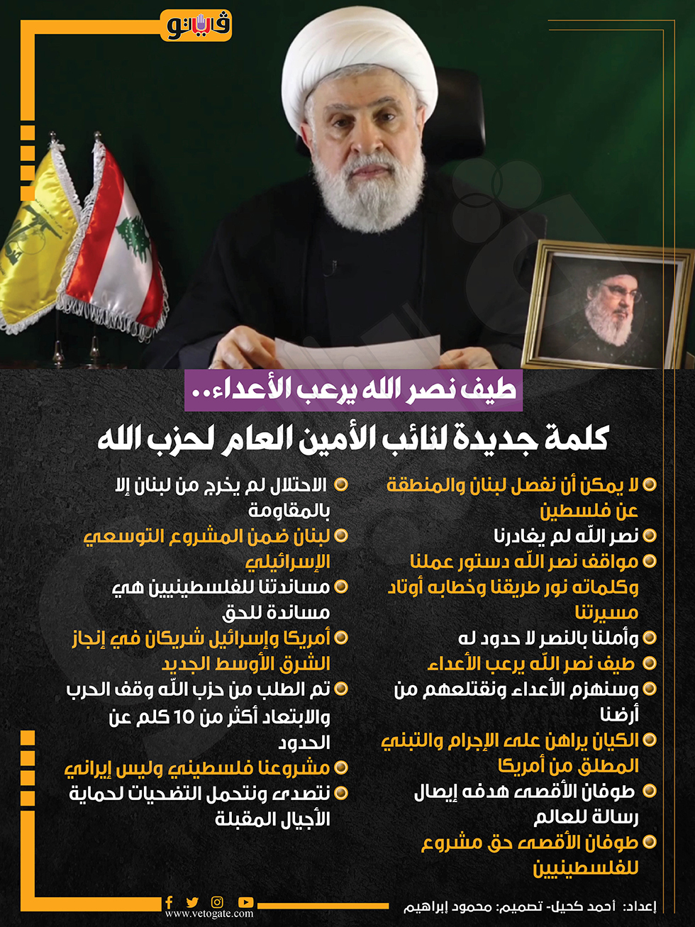 طيف نصر الله يرعب الأعداء.. كلمة جديدة لنائب الأمين العام لحزب الله (إنفوجراف) الثلاثاء 15/أكتوبر/2024 - 06:36 م 10/15/2024 6:36:44 PM الشيخ نعيم قاسم، فيتو أحمد كحيل شارك طباعة 18 حجم الخط شارك طباعة فلسطين لبنان نصر الله طوفان الأقصى الاحتلال المقاومة أمريكا وإسرائيل شريكان الشرق الاوسط الجديد حزب الله