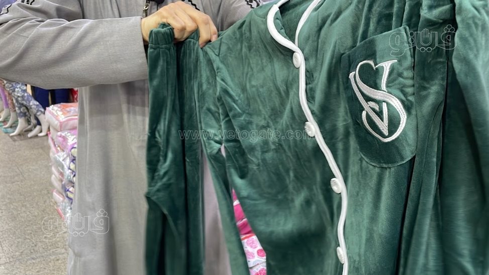- بيجامة قطيفة بزراير: 380 جنيه للبجامة السادة و360 جنيها للبيجامة المشجرة.