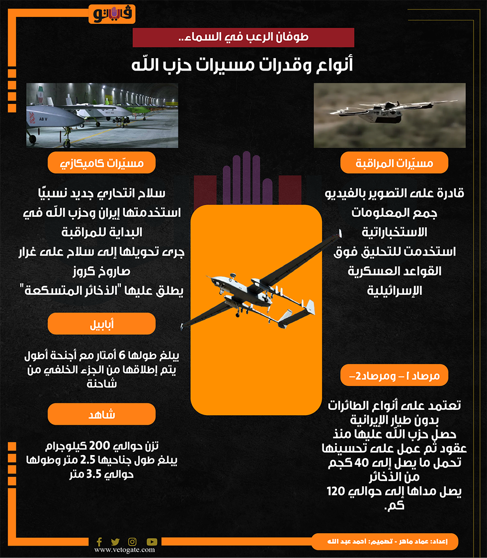 طوفان الرعب في السماء.. أنواع وقدرات مسيرات حزب الله (إنفوجراف) الأربعاء 16/أكتوبر/2024 - 11:30 م 10/16/2024 11:30:31 PM مسيرات حزب الله عماد ماهر شارك طباعة 18 حجم الخط شارك طباعة مسيرات حزب الله السماء حزب الله