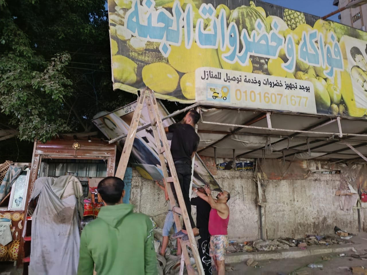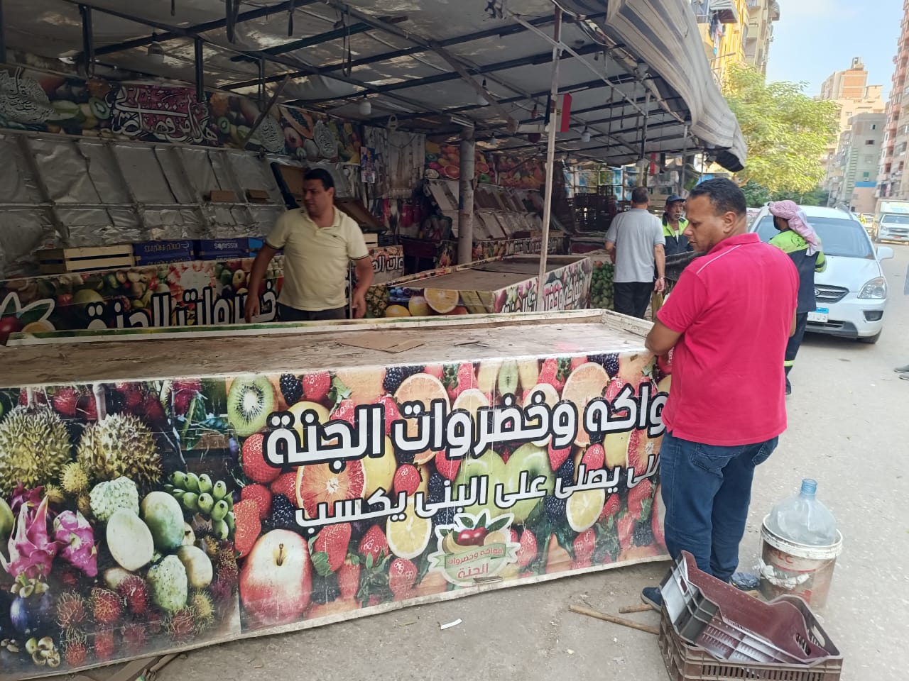 لمغالاته في الأسعار، إزالة منفذ بيع الخضراوات والفاكهة بشارع المطافي في المنصورة
