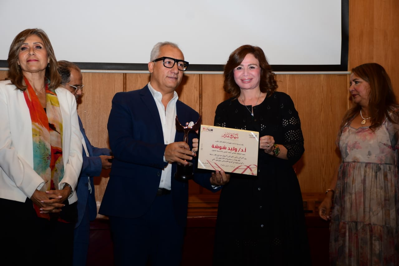 الحفل أقيم تحت رعاية الدكتورة غادة جبارة رئيس الأكاديمية وبحضور الدكتورة نيفين الكيلاني وزيرة الثقافة السابقة َوالفنانة إلهام شاهين رئيس شرف المهرجان والفنانة الكبيرة سوسن بدر والدكتور وليد شوشة عميد المعهد العالي للنقد الفني والدكتور أسامة أبو نار رئيس المهرجان والسيد زياد باسمير نائب رئيس المهرجان وعدد من السينمائيين والنقاد وأساتذة المعهد العالي للنقد الفني.