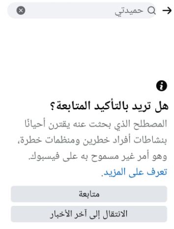 وعند محاولة البحث عن اسم حميدتي، على موقع التواصل الاجتماعي فيسبوك، يتلقى المستخدم رسالة تحذير من الموقع، أن المصطلح الذي بحث عنه يقترن بنشاطات أفراد خطرين، ومنظمات خطرة، بما يخالف القواعد المعمول بها على الموقع.