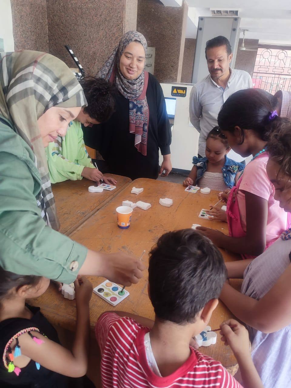 كما نظم القسم التعليمى بالمتحف، ورشة تلوين للأطفال لأشكال الجبس وتلوين رسومات أثرية، كفقىة جاذبة للاطفال لحضور الندوة.