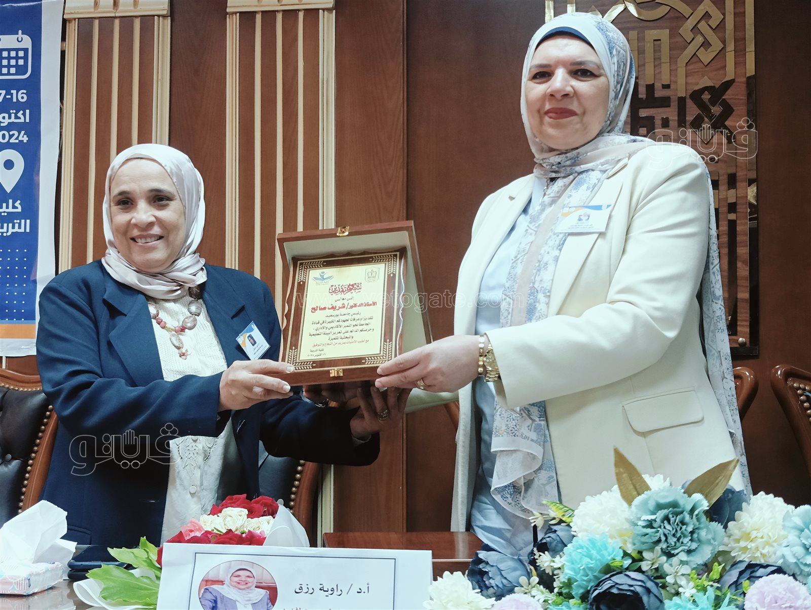 وعقب ذلك أهدت جامعة بورسعيد درع تكريم المؤتمر للدكتور شريف صالح رئيس الجامعة بورسعيد وقد استلمته عنه الدكتورة راوية رزق نائب رئيس الجامعة، كما أهدت كليه التربيه درع المؤتمر الدكتورة راوية رزق موجهين لها الشكر على حضورها.