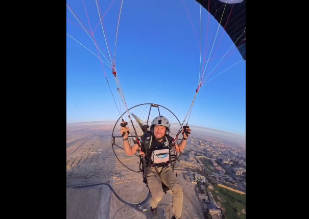 بدأ السائح مقطع الفيديو الجديد قائلًا: "أسمي مارشال.. وأنا على وشك التحليق بالطائرة الشراعية فوق الهرم الأكبر بالجيزة"