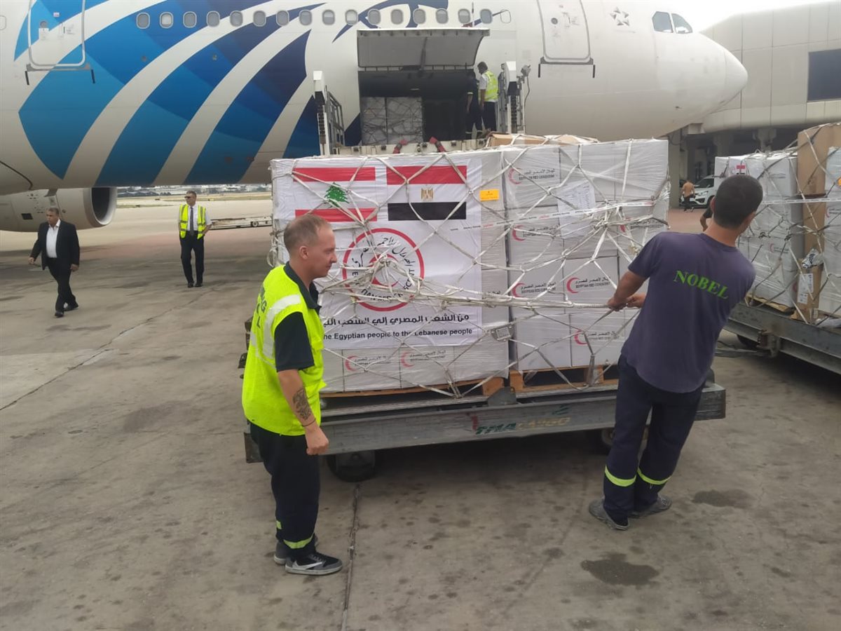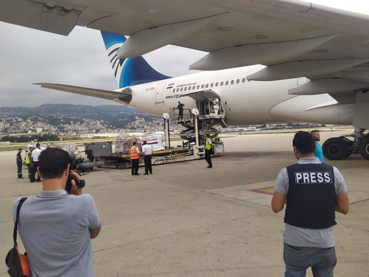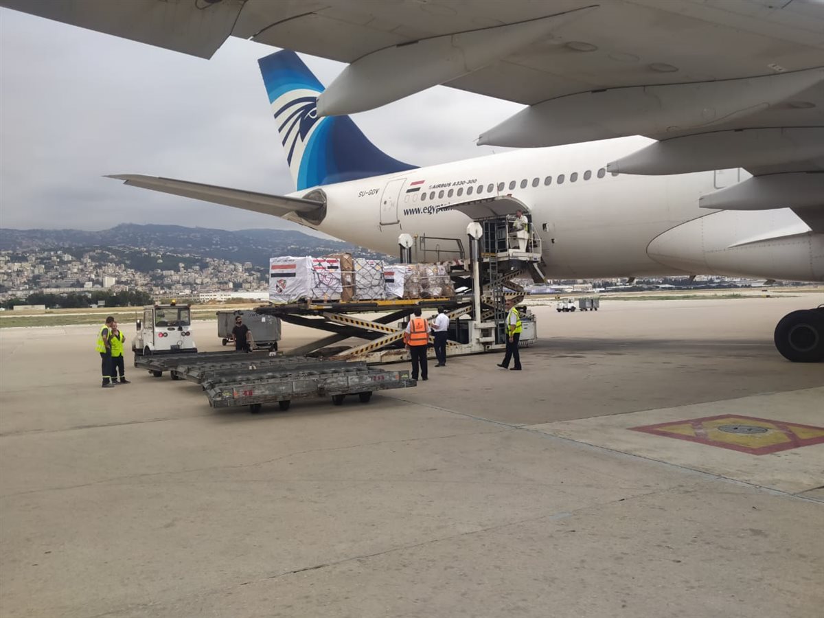 وفور وصول الطائرة إلى مطار بيروت تم تفريغ شحنة المساعدات المصرية.