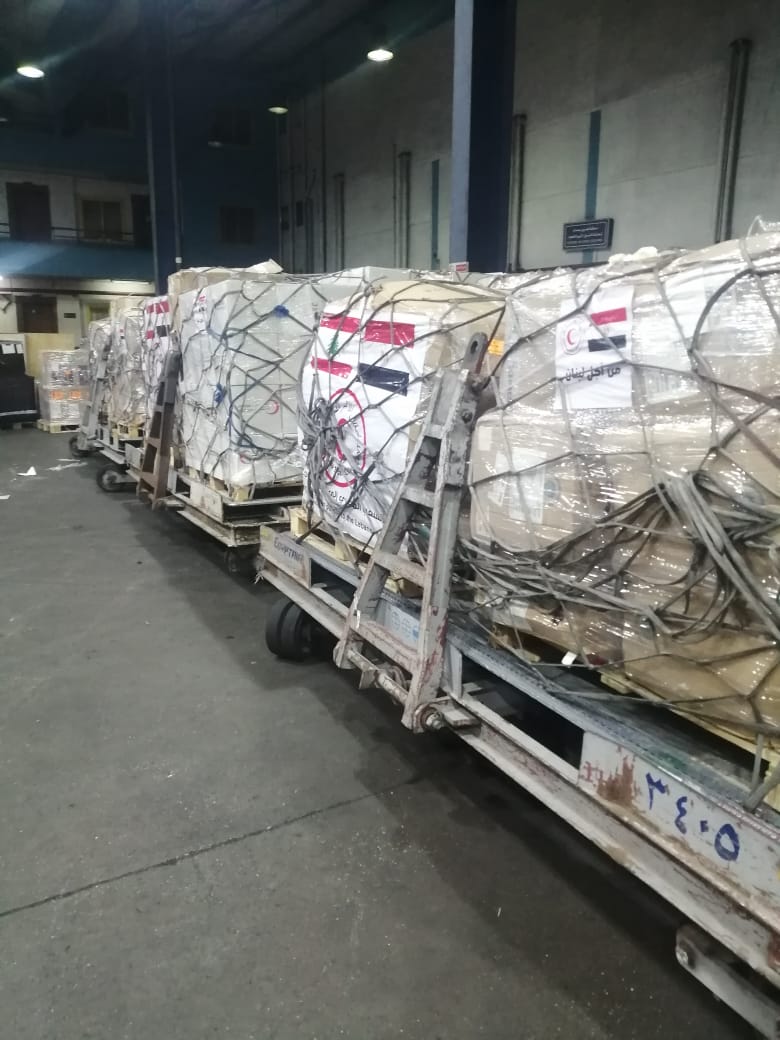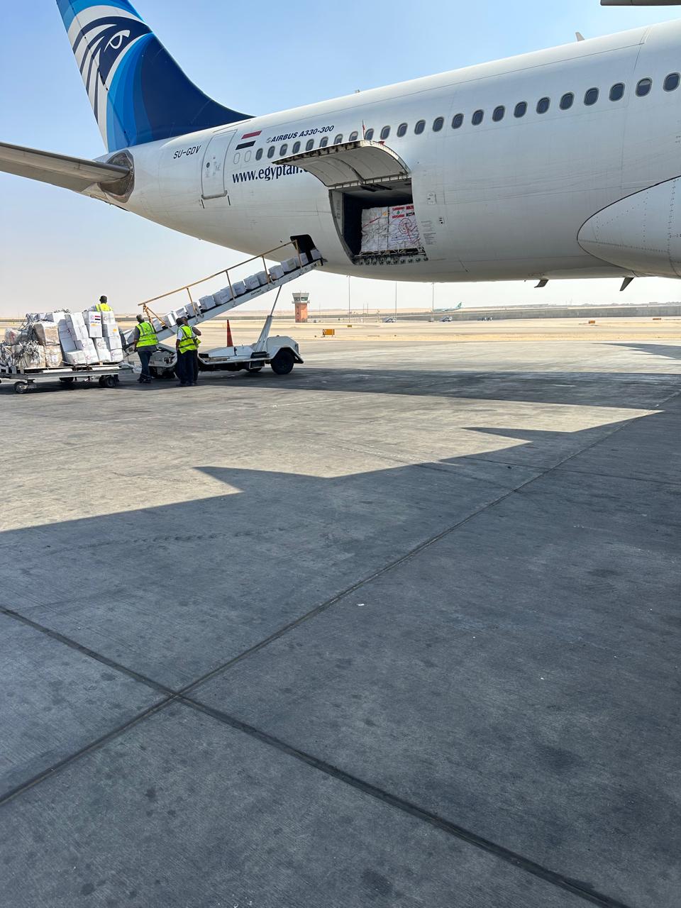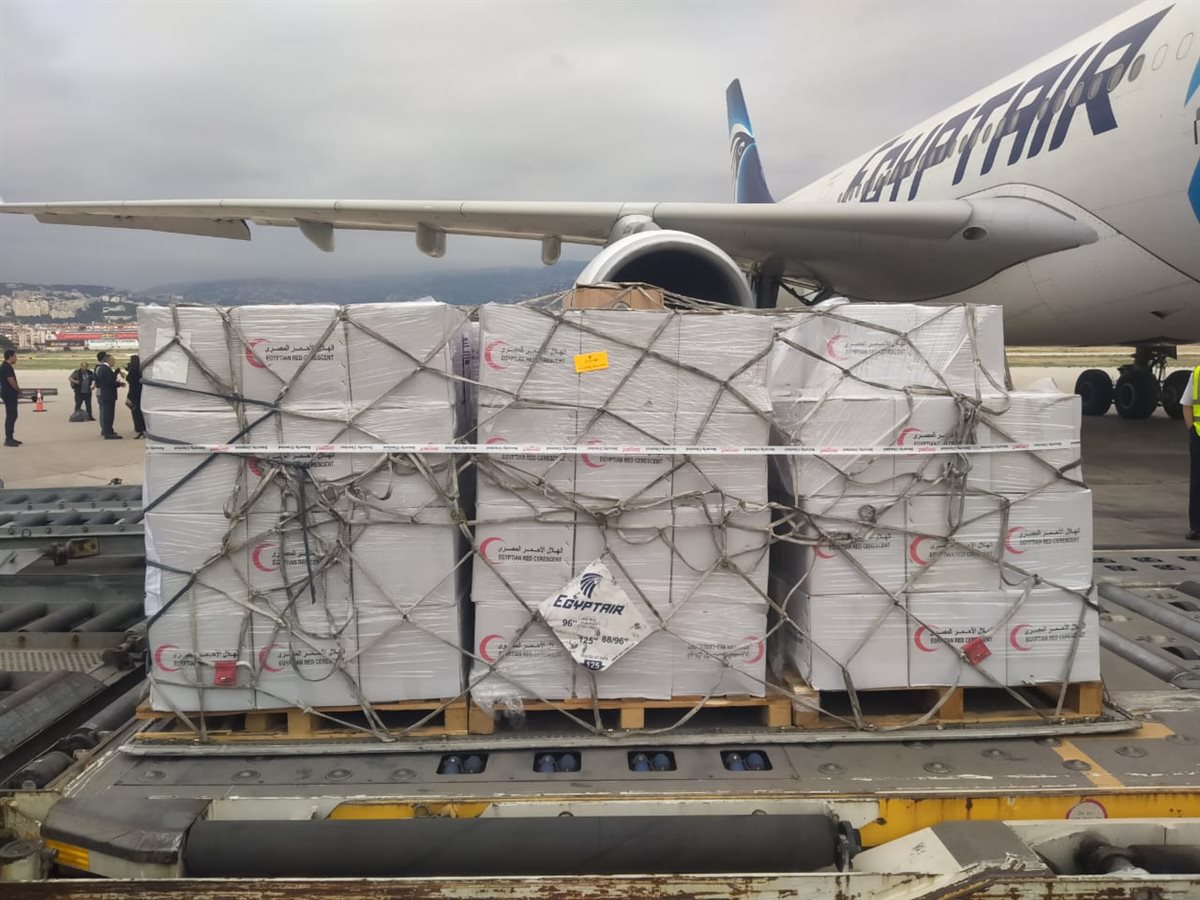 وفور وصول الطائرة إلى مطار بيروت تم تفريغ شحنة المساعدات المصرية.