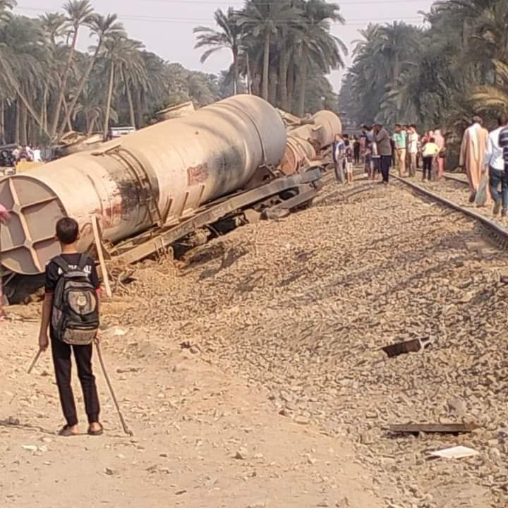 خروج قطار بضائع عن القضبان بالقرب من البدرشين على خط التبين الواحات.