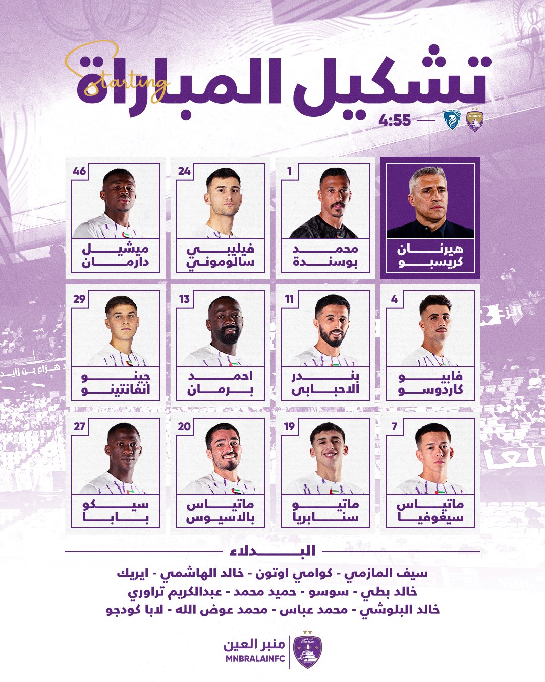 وأحرز أهداف العين مايتو سنابريا وماتياس سيجوفيا ولابا كودجو وجون إنفانتينو في الدقائق 32 و58 و71 و88 على الترتيب.