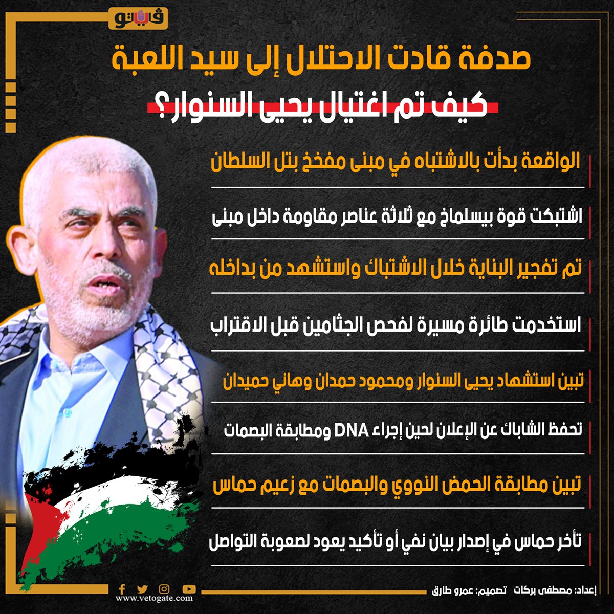 صدفة قادت الاحتلال إلى سيد اللعبة.. كيف تم اغتيال يحيى السنوار؟ (إنفوجراف) الجمعة 18/أكتوبر/2024 - 02:05 ص 10/18/2024 2:05:53 AM يحيى السنوار، فيتو مصطفى بركات تصميم :عمرو طارق شارك طباعة 18 حجم الخط شارك طباعة