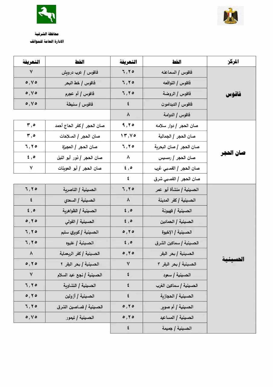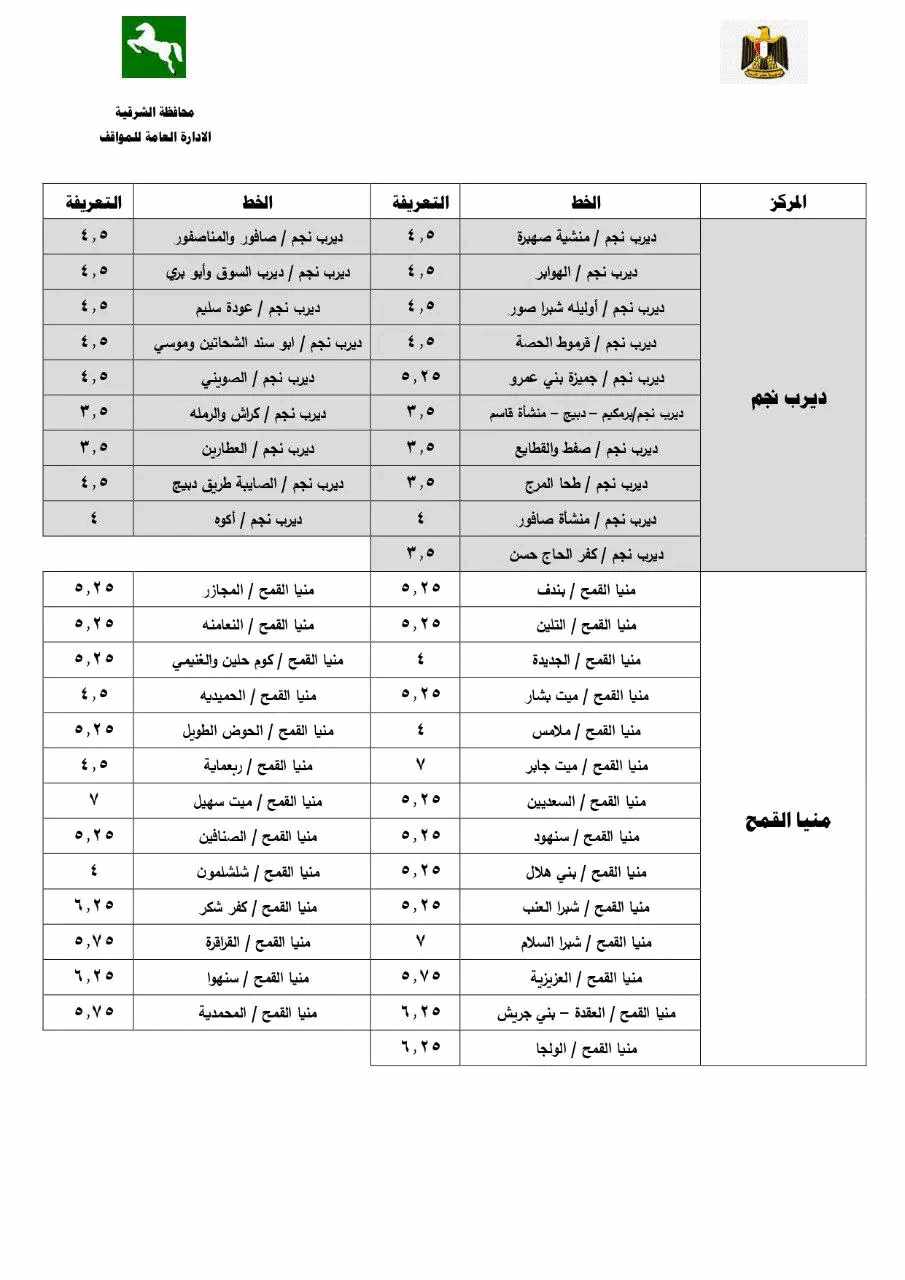 فتح البنديرة 10 جنيهات، تعريفة الركوب الجديدة لسيارات الأجرة بالشرقية (صور)