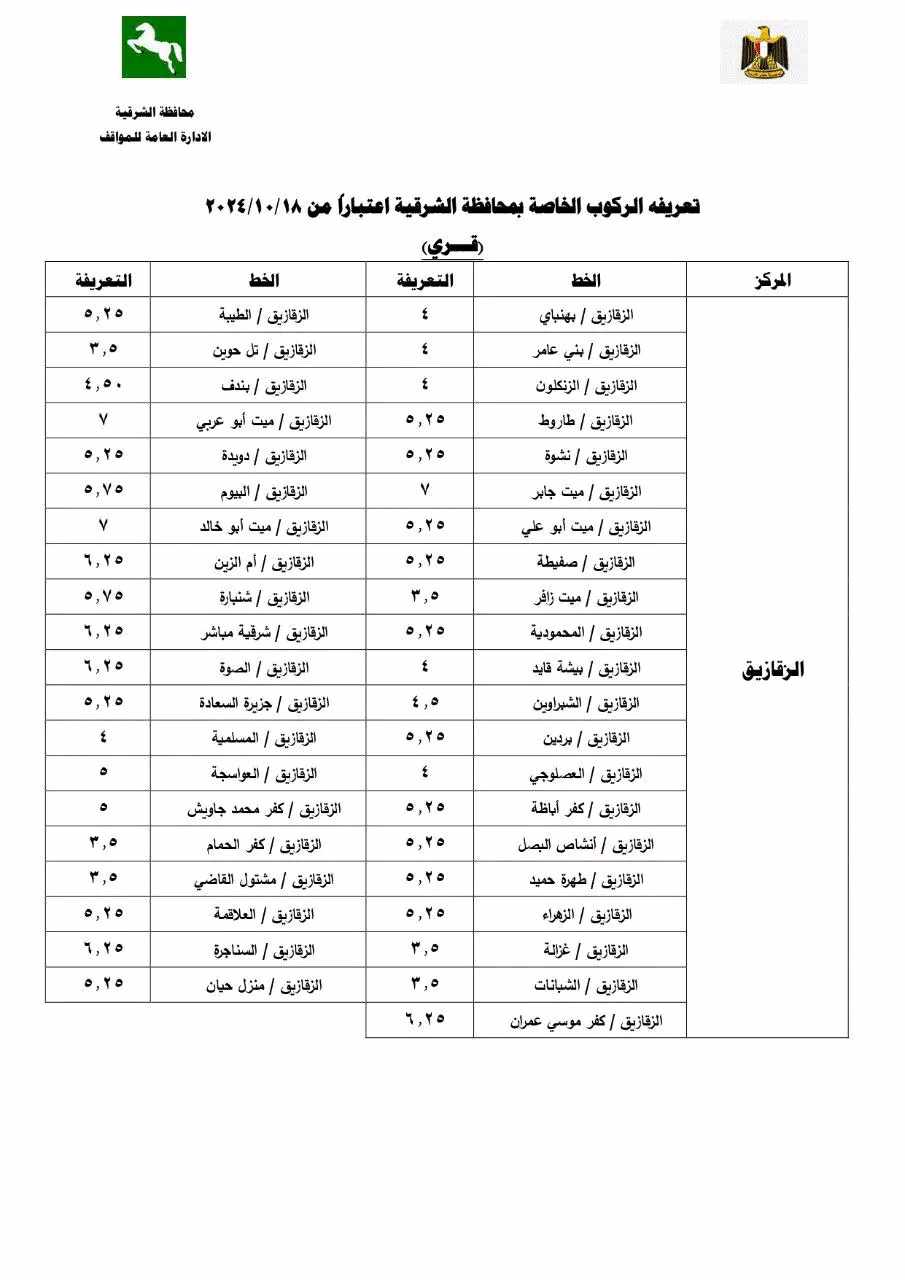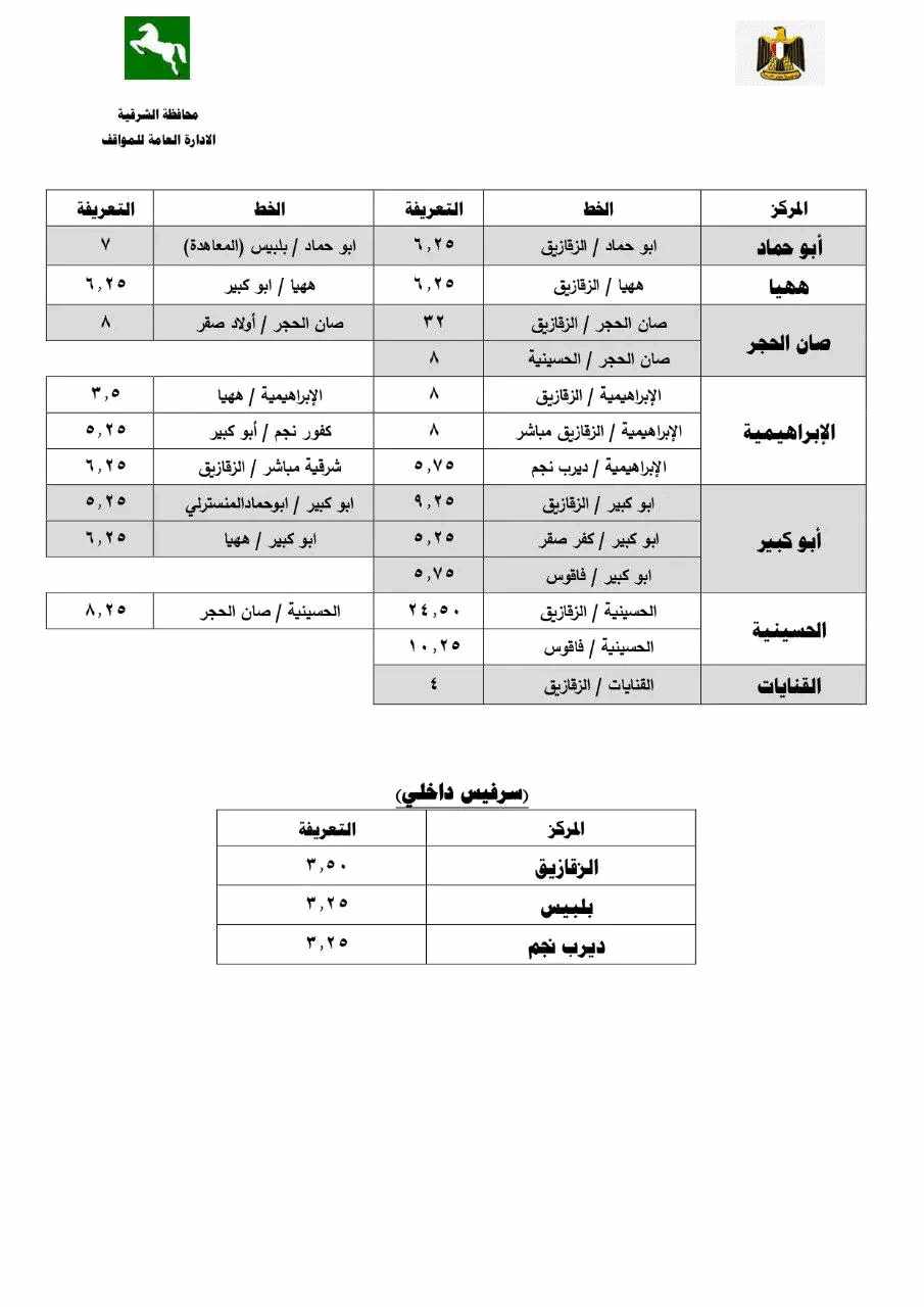 تعديل تعريفة ركوب السرفيس بالزقازيق