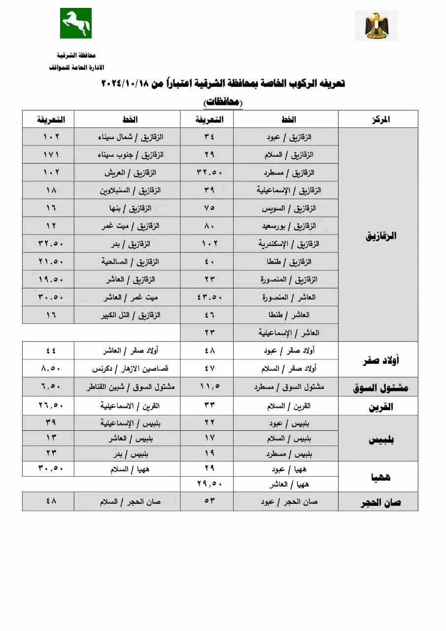 وخلال الإجتماع أصدر محافظ الشرقية القراررقم 4203 لسنة 2024 بشأن تعديل تعريفة ركوب ( سيارات الأجرة العاملة بجميع الخطوط – سيارات السرفيس بخطوط السير داخل المدن ) بنطاق المحافظة وذلك بعد تحريك سعر المواد البترولية بمعرفة لجنة التسعير التلقائي للمواد البترولية.